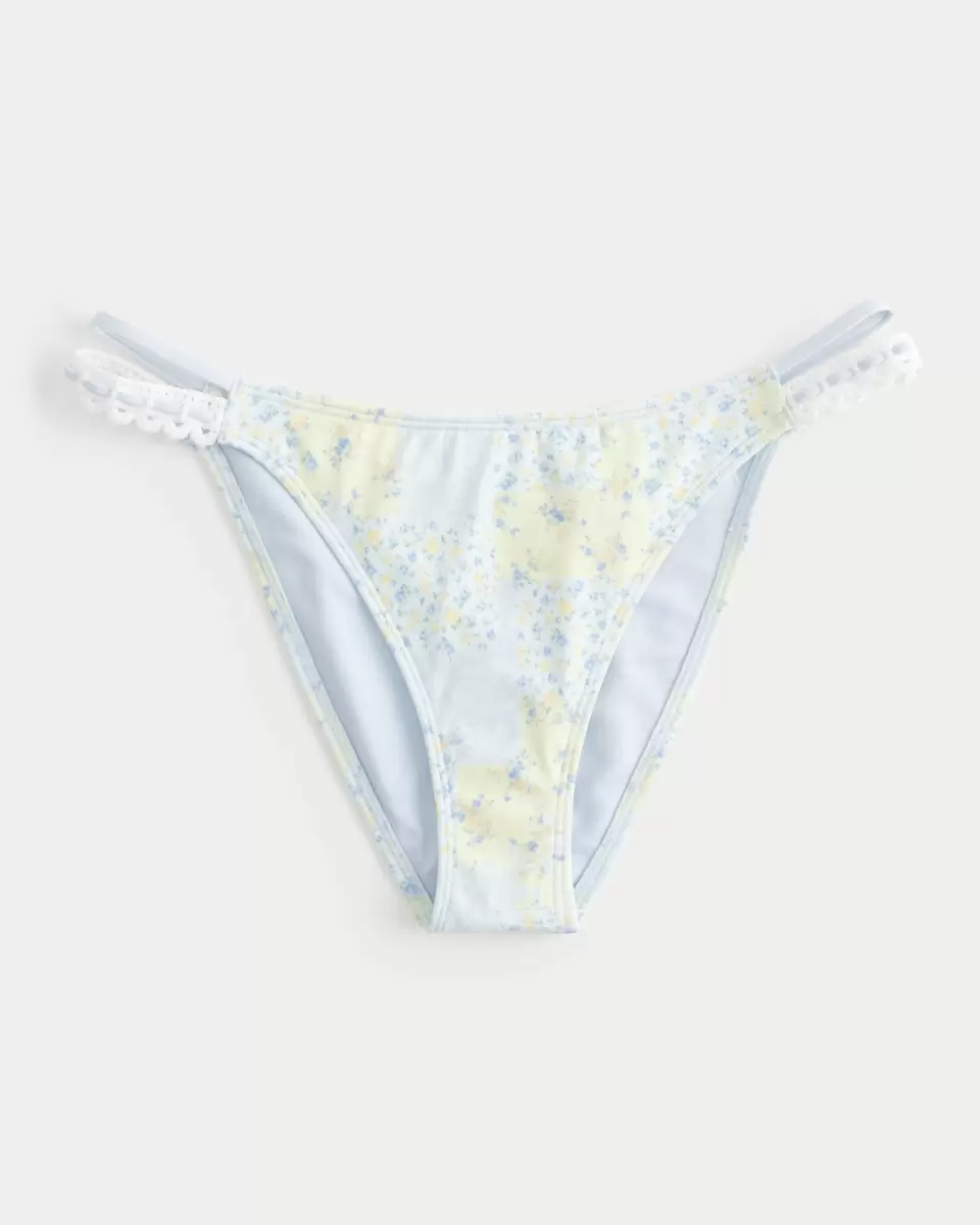 En vacker bikinitrosa i mjukt virkat simtyg. Remmiga sidor, siluett med höga ben, fräck täckning. Importerad.
