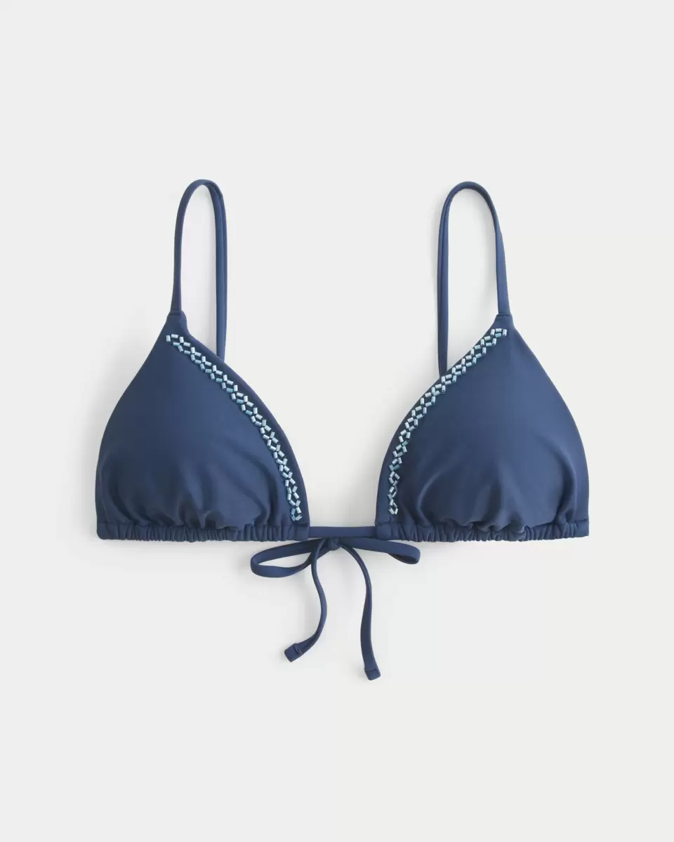 En söt bikinitopp designad med en klassisk triangelsiluett. Avtagbar stoppning, justerbara remmar, knytstängning, pärldetaljer. Importerad.