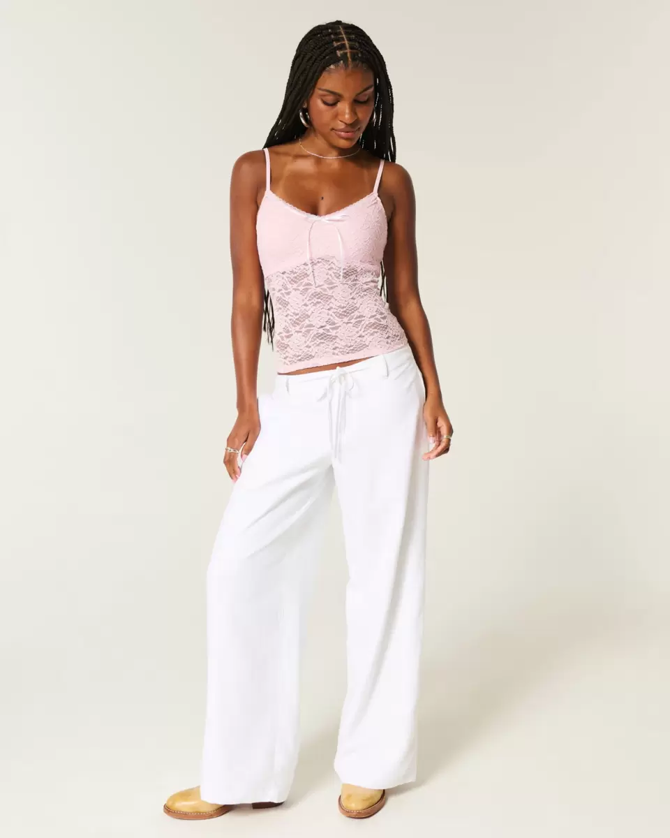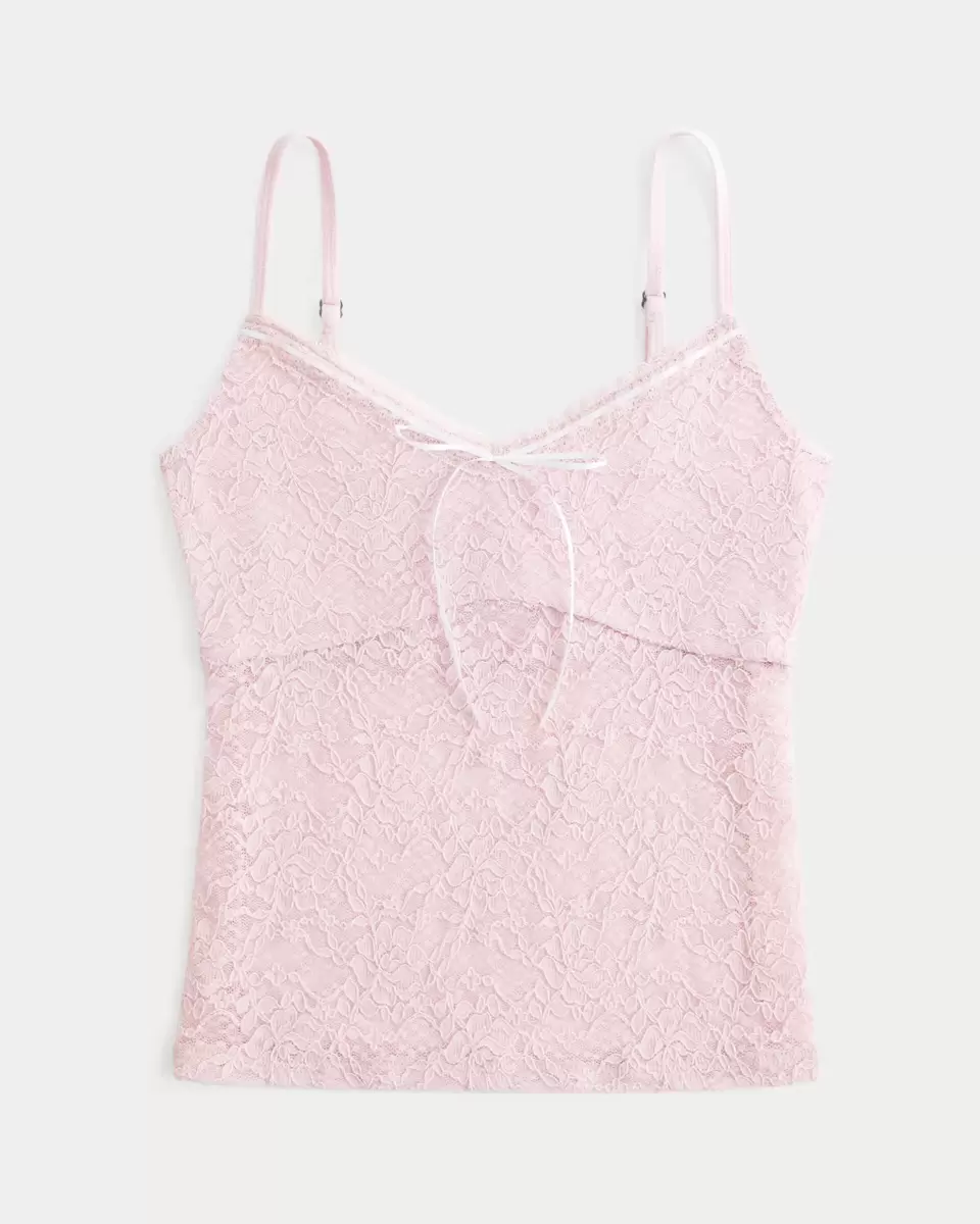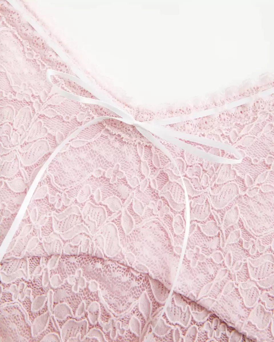 En vacker cami i supermjuk spets, med bågad kant i halsen och en vacker rosettdetalj. Dubbelfodrad vid byst, justerbara axelband, v-ringning. Slim Fit. Importerad.