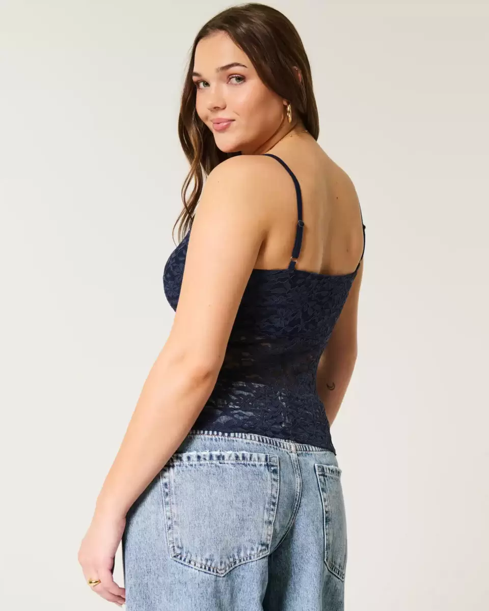 En vacker och supermjuk cami i spets. Justerbara remmar, v-ringning. Slim Fit. Importerad.