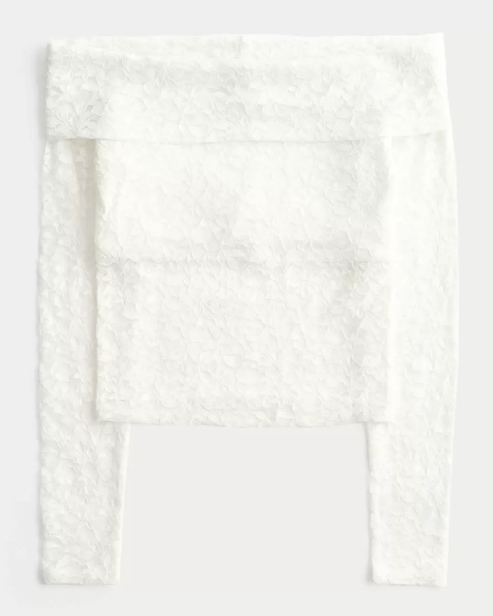 En snygg och supermjuk topp i spets med långa ärmar och en vikbar halsringning. Invändigt foder vid byst. Importerad.