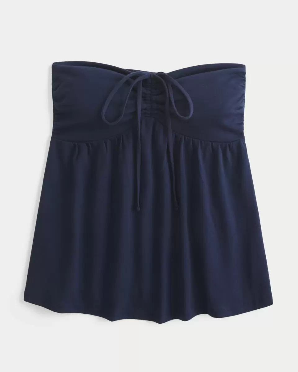 Flytig och supermjuk, denna babydoll-topp har en byst med knytdetaljer och axelbandslös halsringning med möjlighet att knytas som en grimstopp. Dubbelfodrad vid byst. Easy Fit. Importerad.