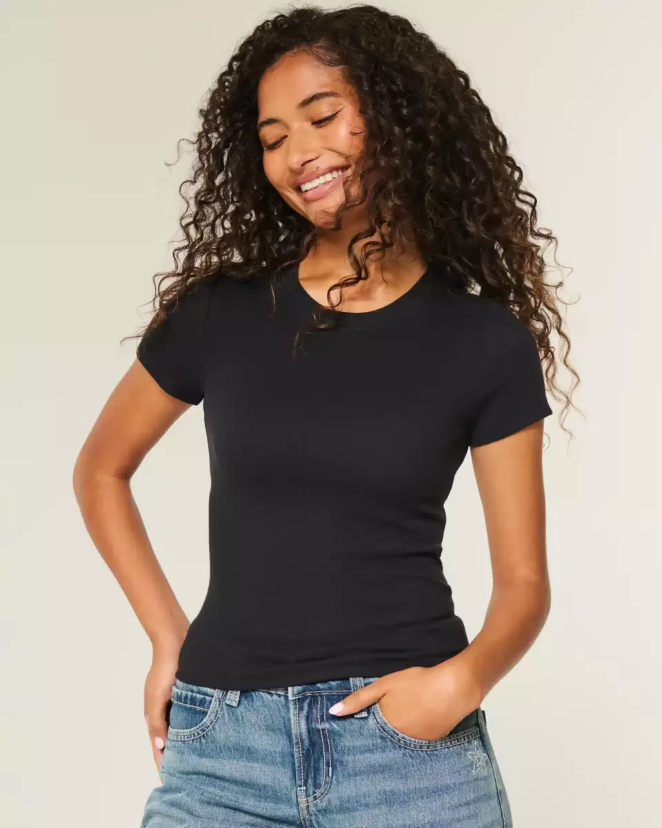 Denna söta, supermjuka baby-t-shirt är designad med en något krympt siluett. Rund halsringning, korta ärmar. Importerad.