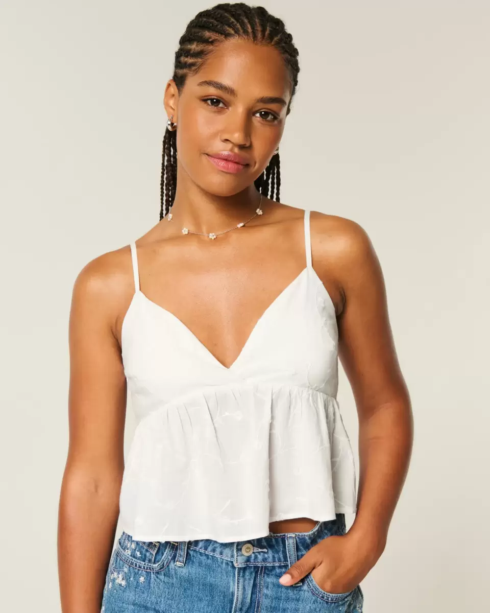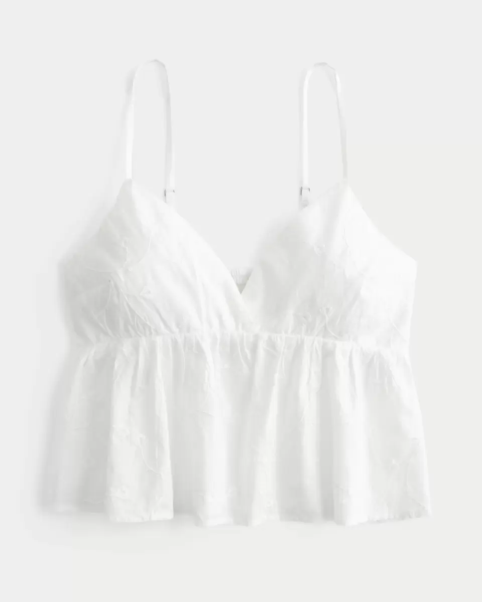 Den här vackra toppen ser fantastisk ut klädd upp eller ner! Söt babydoll-siluett, blommigt broderi med glänsande detaljer, mjuk smockad rygg, inbyggda kuddar, justerbara remmar. Easy Fit. Importerad.