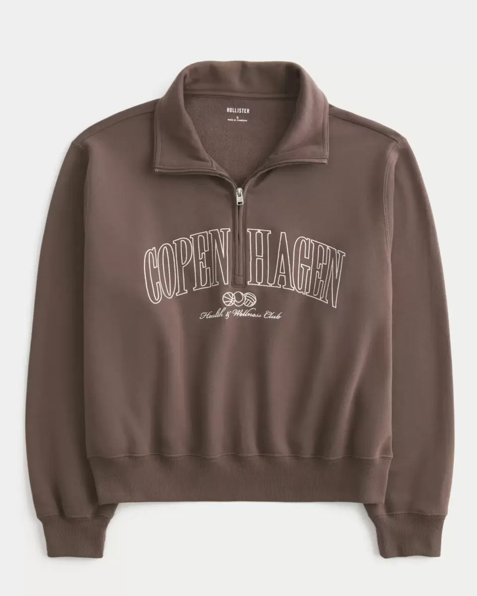 Den här sweatshirten är gjord av supermjukt fleecetyg och har en vikkrage med halv dragkedja och en broderad Köpenhamnsgrafik. Easy Fit.