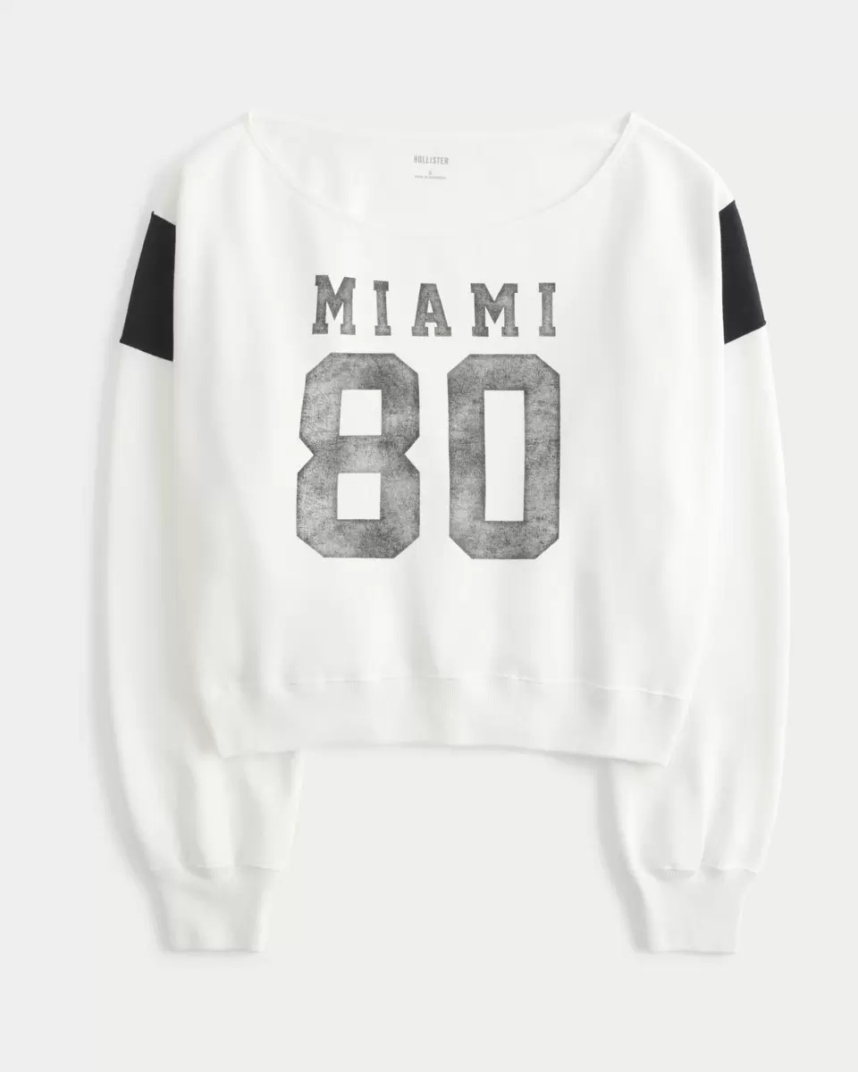 En supermjuk fleecetröja med sportig Miami-grafik och en off-the-hour halsringning. Långa ärmar. Easy Fit. Importerad.