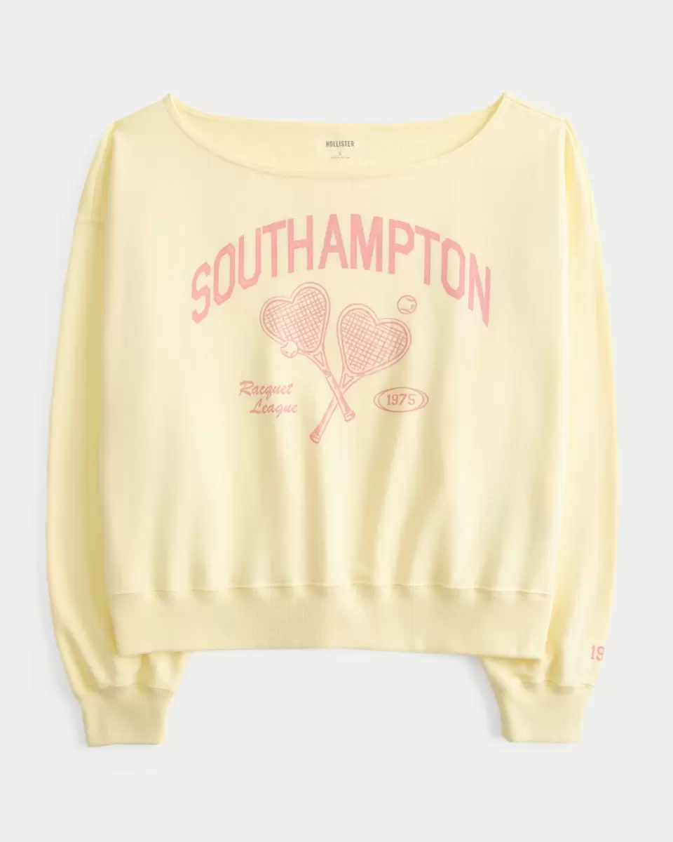 En supermjuk fleecetröja med Southampton-grafik, en off-the-shoulder-ringning och långa ärmar. Easy Fit. Importerad.