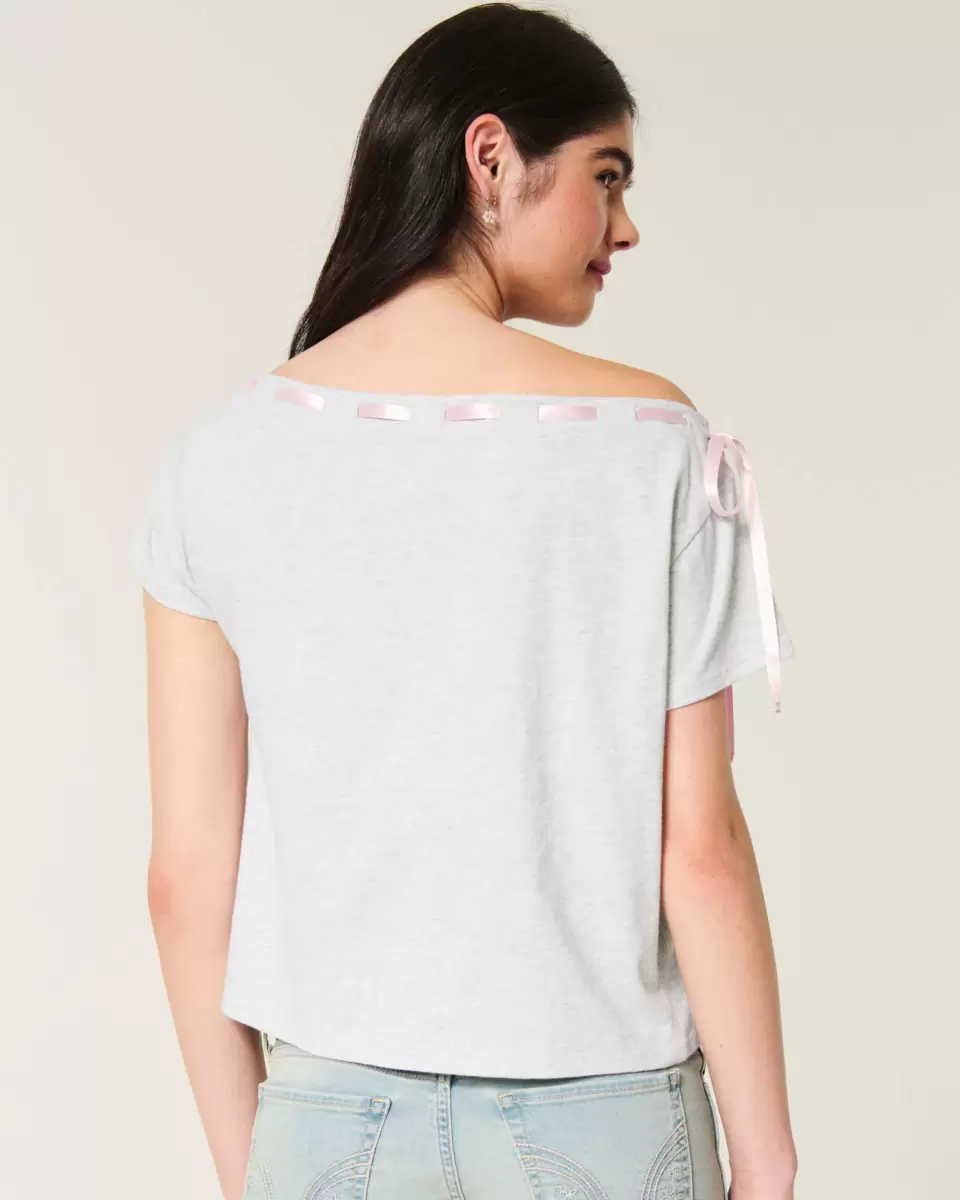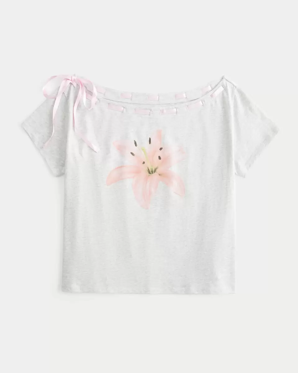 Gjord av supermjuk 100 % bomull, den här t-shirten har en off-the-shoulder halsringning med en vacker knytdetalj. Söt blommig grafik, korta ärmar. Easy Fit. Importerad.