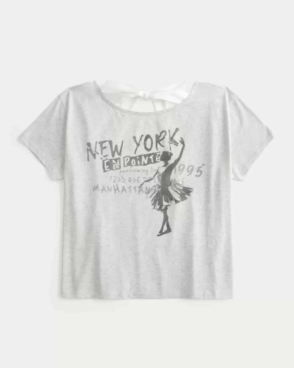 Söt och supermjuk, den här tröjan har New York-grafik och en knytdetalj baktill. Korta ärmar. Easy Fit. Importerad.