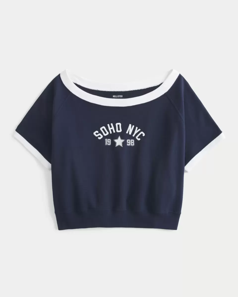 En mysig och supermjuk kortärmad tröja med en off-the-hour halsringning och SoHo NYC grafiskt broderi. Terry fleece tyg. Easy Fit. Importerad.