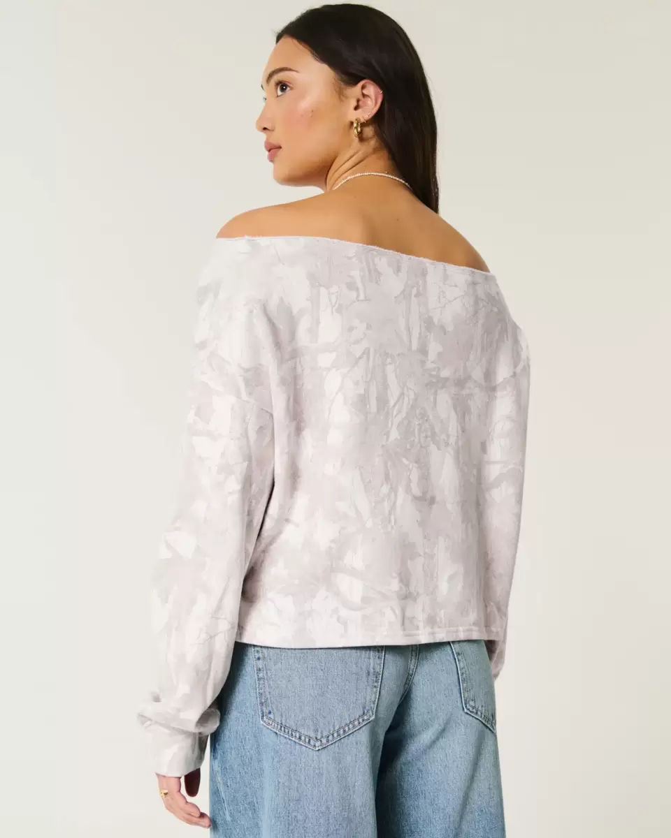 En supermjuk fleecetröja med ett heltäckande camomönster och axelringning. Långa ärmar. Easy Fit. Importerad.