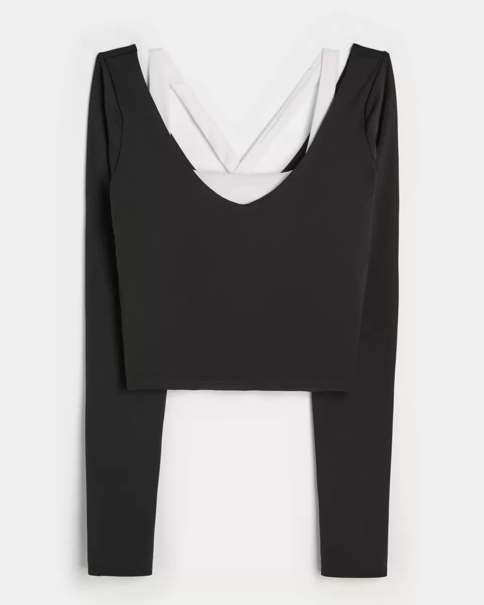 Denna supersöta topp är designad i vårt andningsbara, 4-vägs stretch, fukttransporterande Boost-tyg med en supermjuk, borstad känsla. Skiktade remmar, inbyggd hyllbh med avtagbara kuddar, långa ärmar. Importerad.