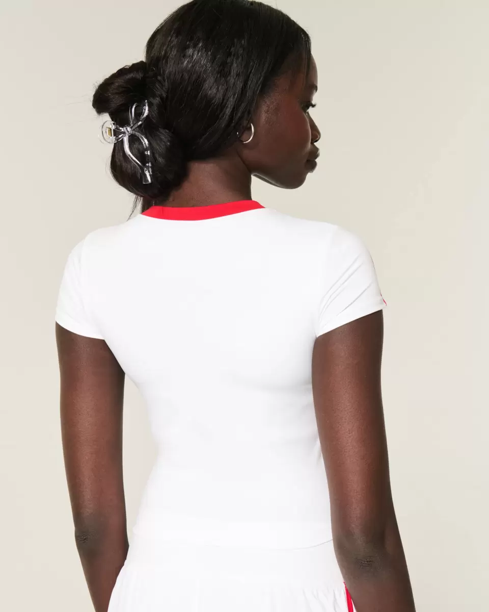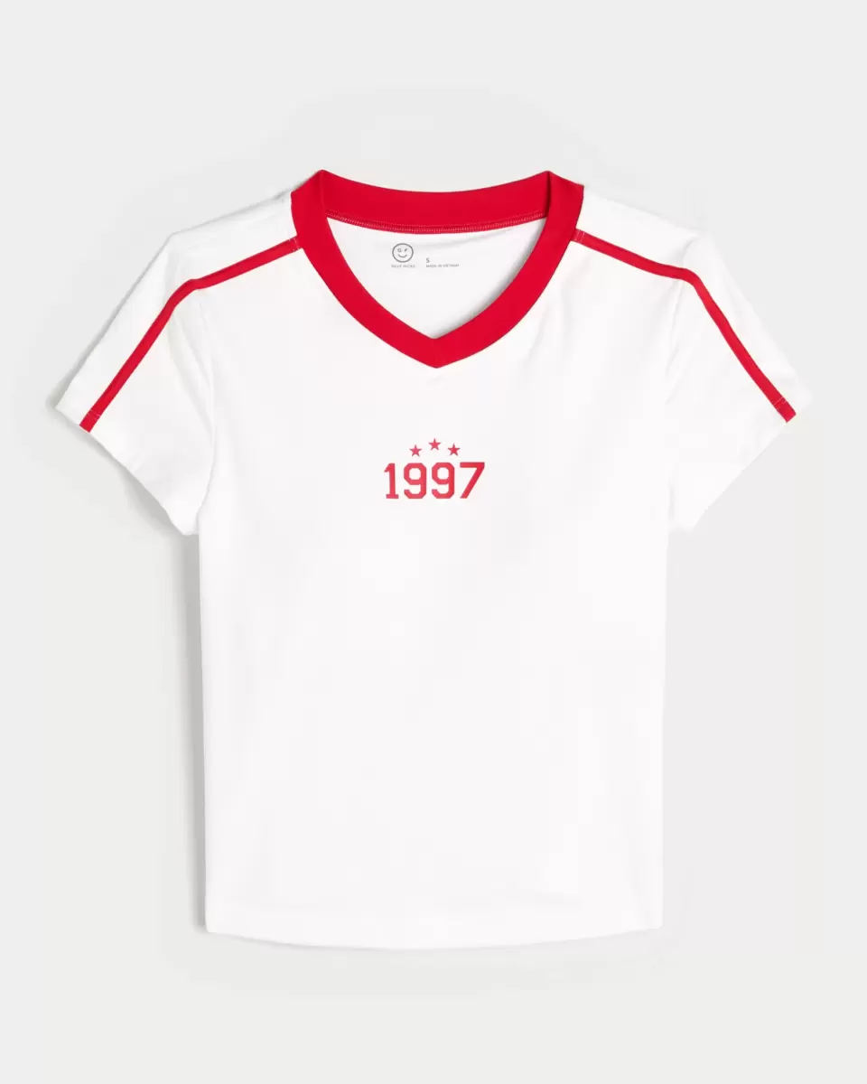 Denna supermjuka och bekväma baby-t-shirt har en sportig grafik och v-ringning. Kort ärm, inbyggd hyllbh med avtagbara kuddar. Importerad.
