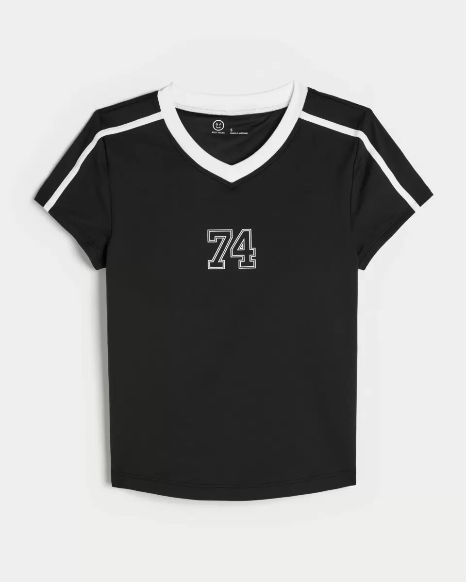 Denna supermjuka och bekväma baby-t-shirt har en sportig grafik och v-ringning. Kort ärm, inbyggd hyllbh med avtagbara kuddar. Importerad.