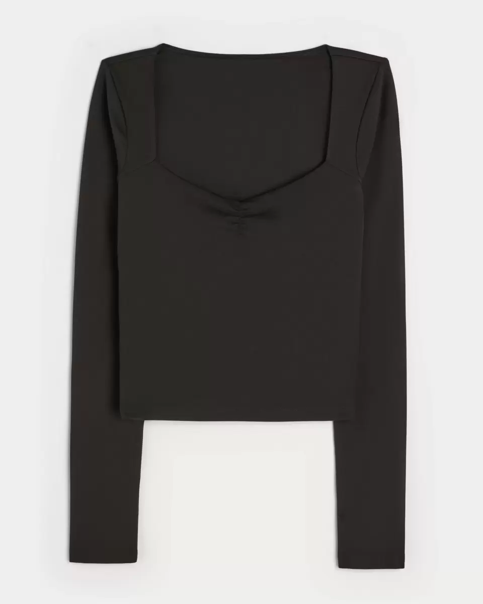 Denna supersöta topp är designad i vårt andningsbara, 4-vägs stretch, fukttransporterande Recharge-tyg med en supermjuk, borstad känsla. Sweetheart halsringning med rynkad detalj, långa ärmar, inbyggd hyllbh med avtagbara kuddar. Långa ärmar, tumöppningar. Importerad.