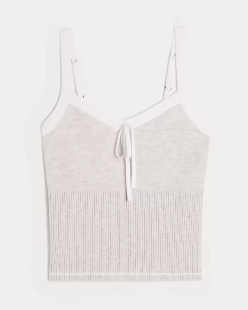 En mysig och supermjuk tröjastickad tank med en vacker knytdetalj vid halsringningen och justerbara remmar. Ribbstickad fåll. Importerad.