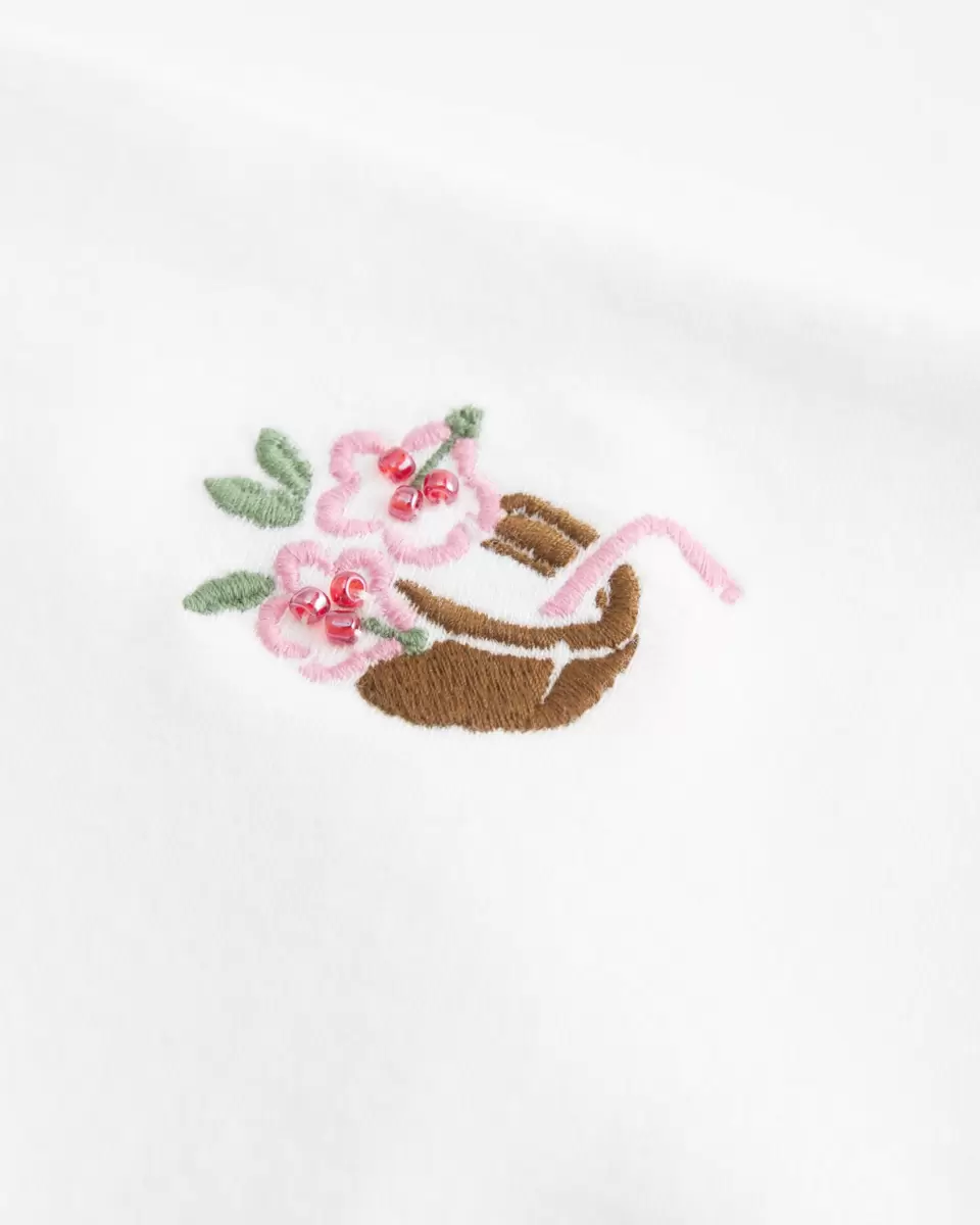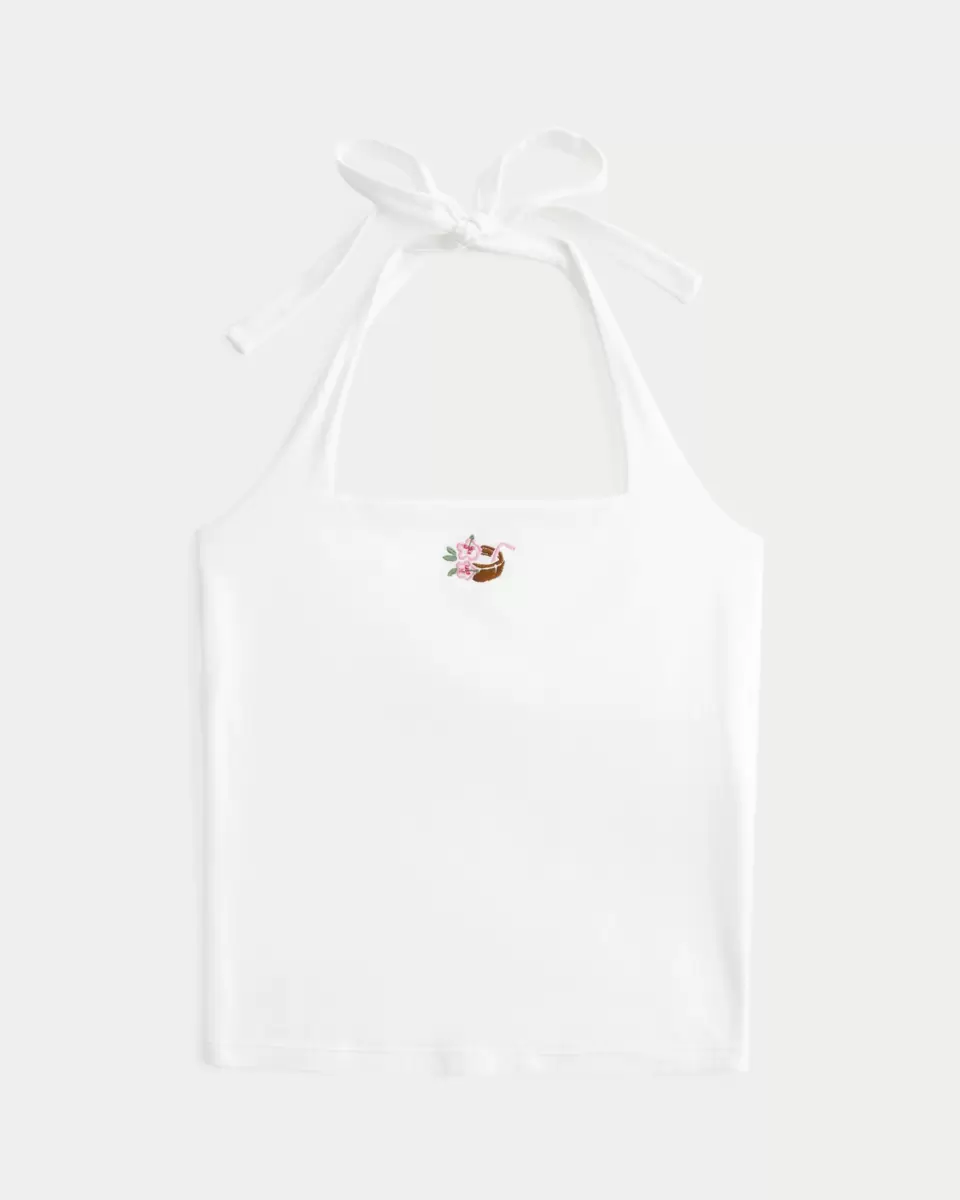 Denna bekväma och supermjuka topp har en söt broderad grafik med pärldetaljer. Halter remmar. Slim Fit. Importerad.