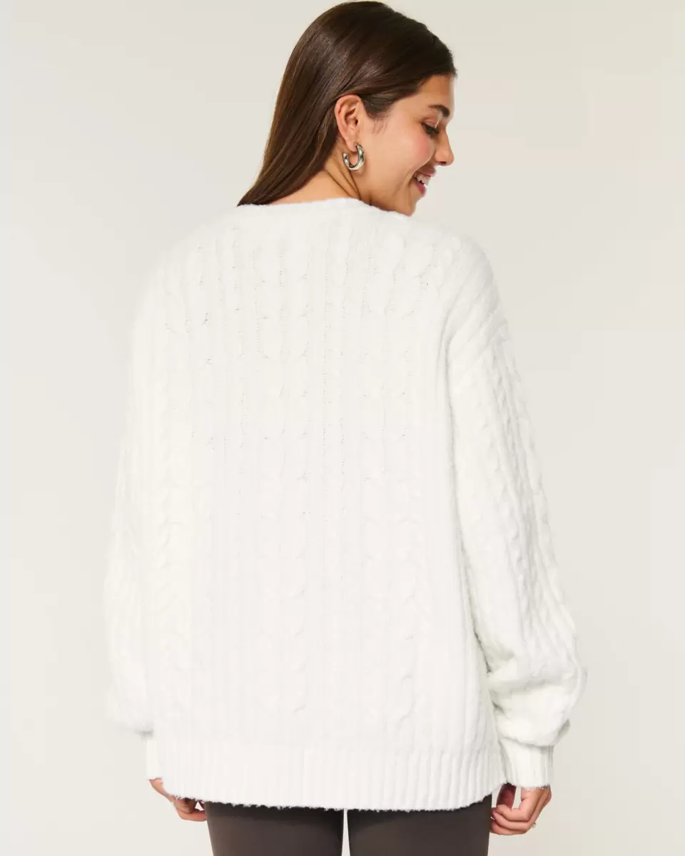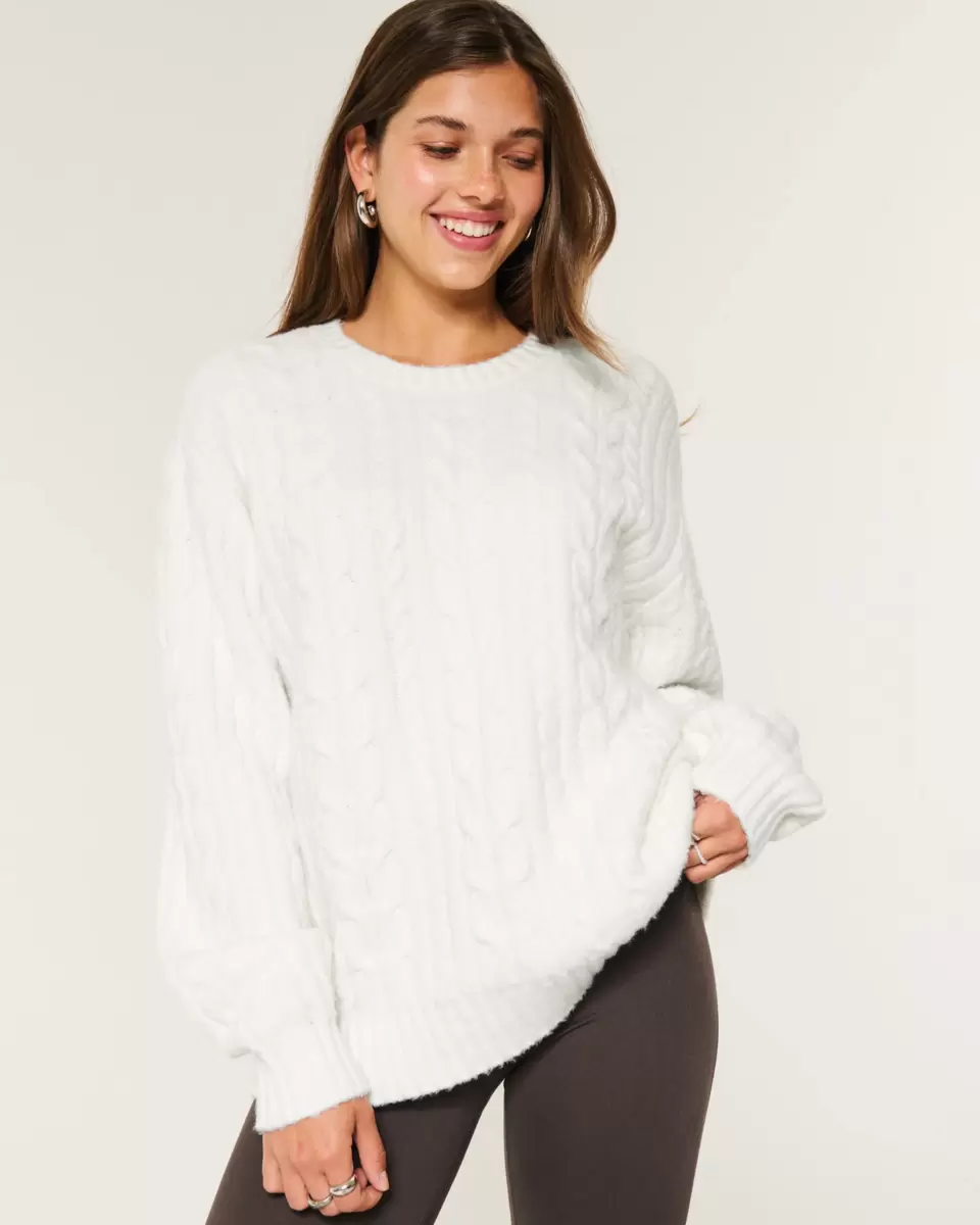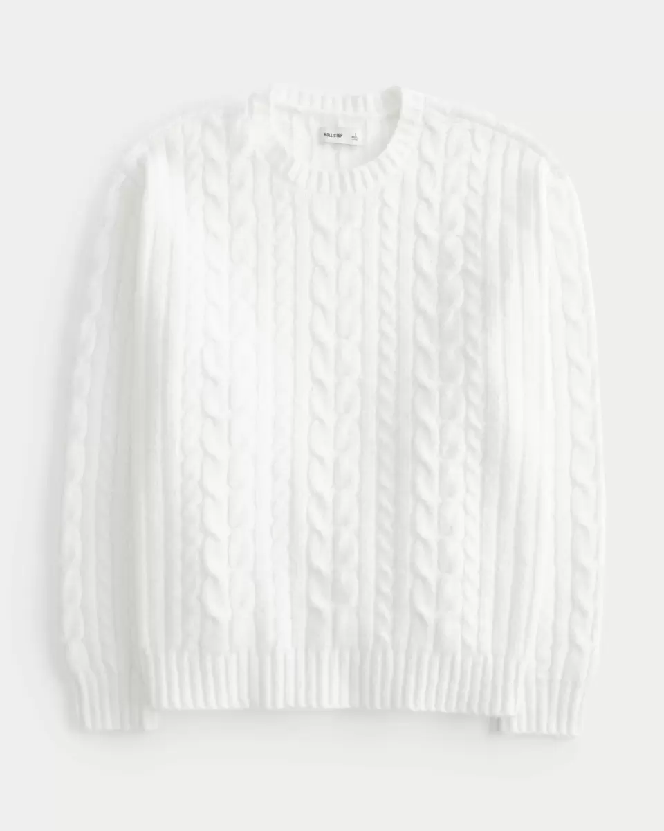 En otroligt mysig sweatshirt i vårt supermjuka Comfy Cloud-stickade tyg, med klassiska kabelstickade mönster. Rund halsringning, långa ärmar, ribbad kant. Oversized Fit.