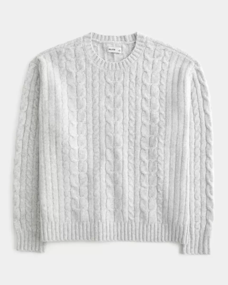 Otroligt mjuk och skön, den här tröjan har klassiska kabelstickade mönster och en rund halsringning. Ribbade kanter. Överdimensionerad passform. Importerad.