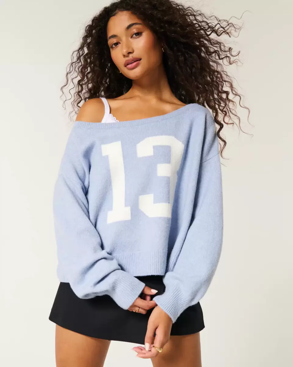 Hollister Comfy Cloud Easy Off-the-Soulder Number Graphic Sweater