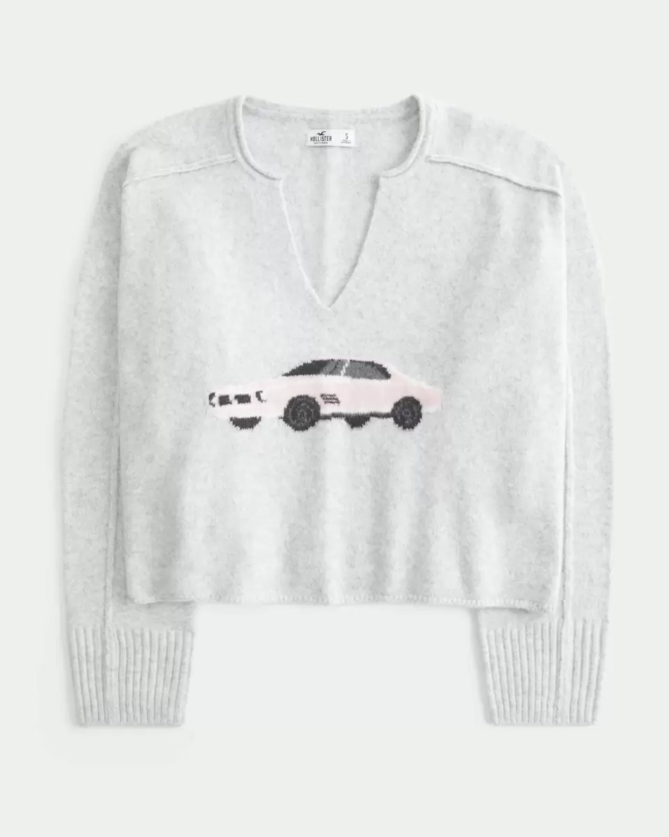 Supermjuk och bekväm, den här tröjan har en bilintarsia-grafik. Naggad halsringning, långa ärmar med ribbad fåll. Importerad.