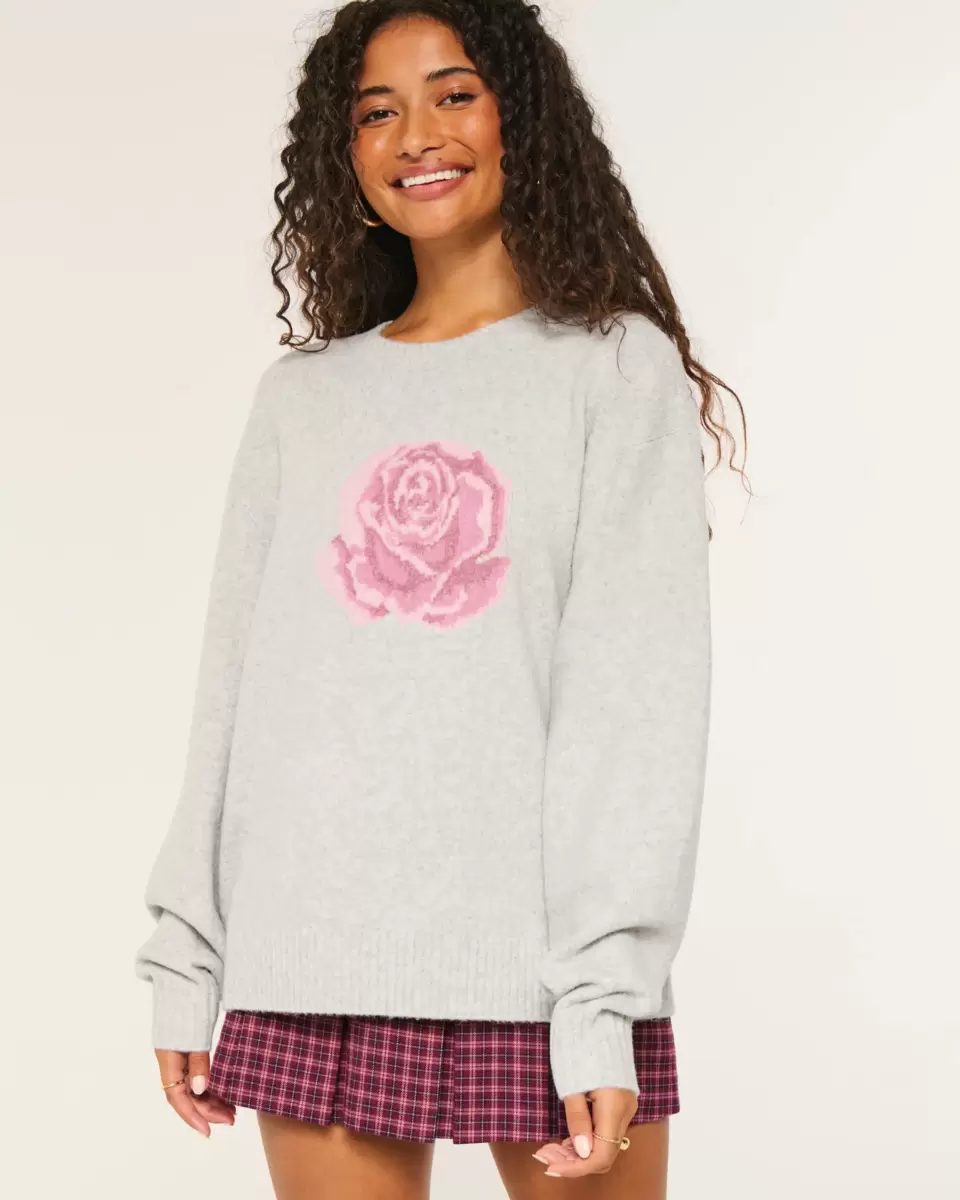 En supermjuk tröja i otroligt mysigt stickat tyg, med en vacker rosa intarsia-grafik. Rund halsringning, långa ärmar, ribbad kant. Överdimensionerad passform. Importerad.