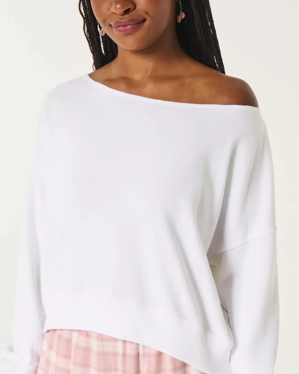 En mysig och supermjuk tröja i frottéfleece, designad med en off-the-shoulder-ringning. Långa ärmar. Easy Fit. Importerad.
