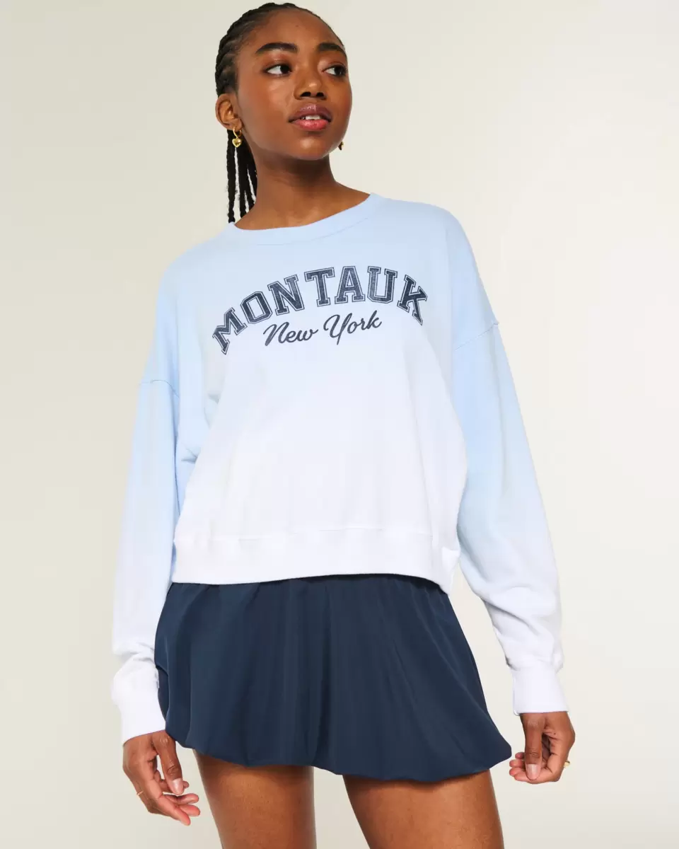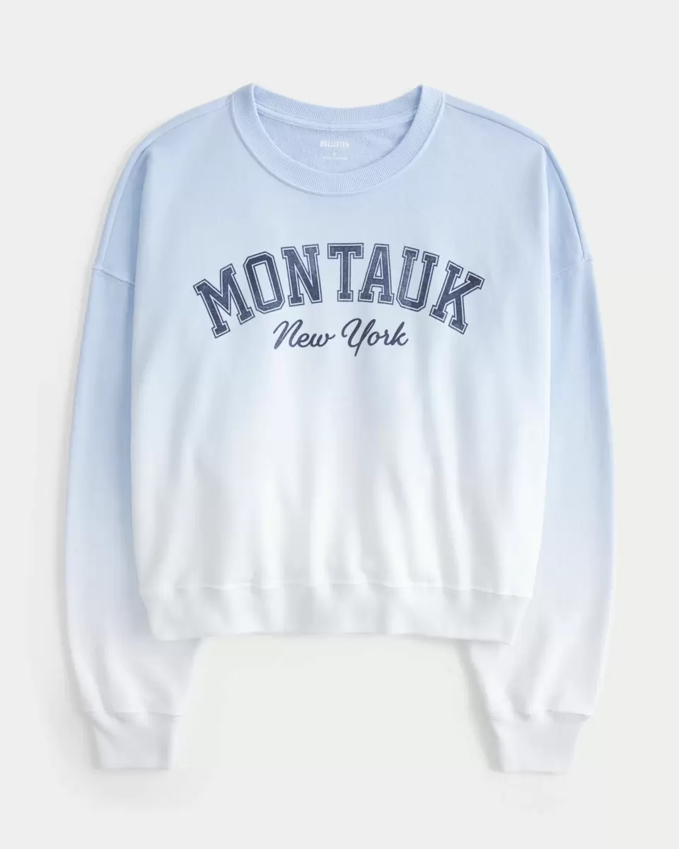En supermjuk fleecetröja med ett Montauk New York-tryck, rund halsringning och långa ärmar. Dip-färgad look. Easy Fit. Importerad.
