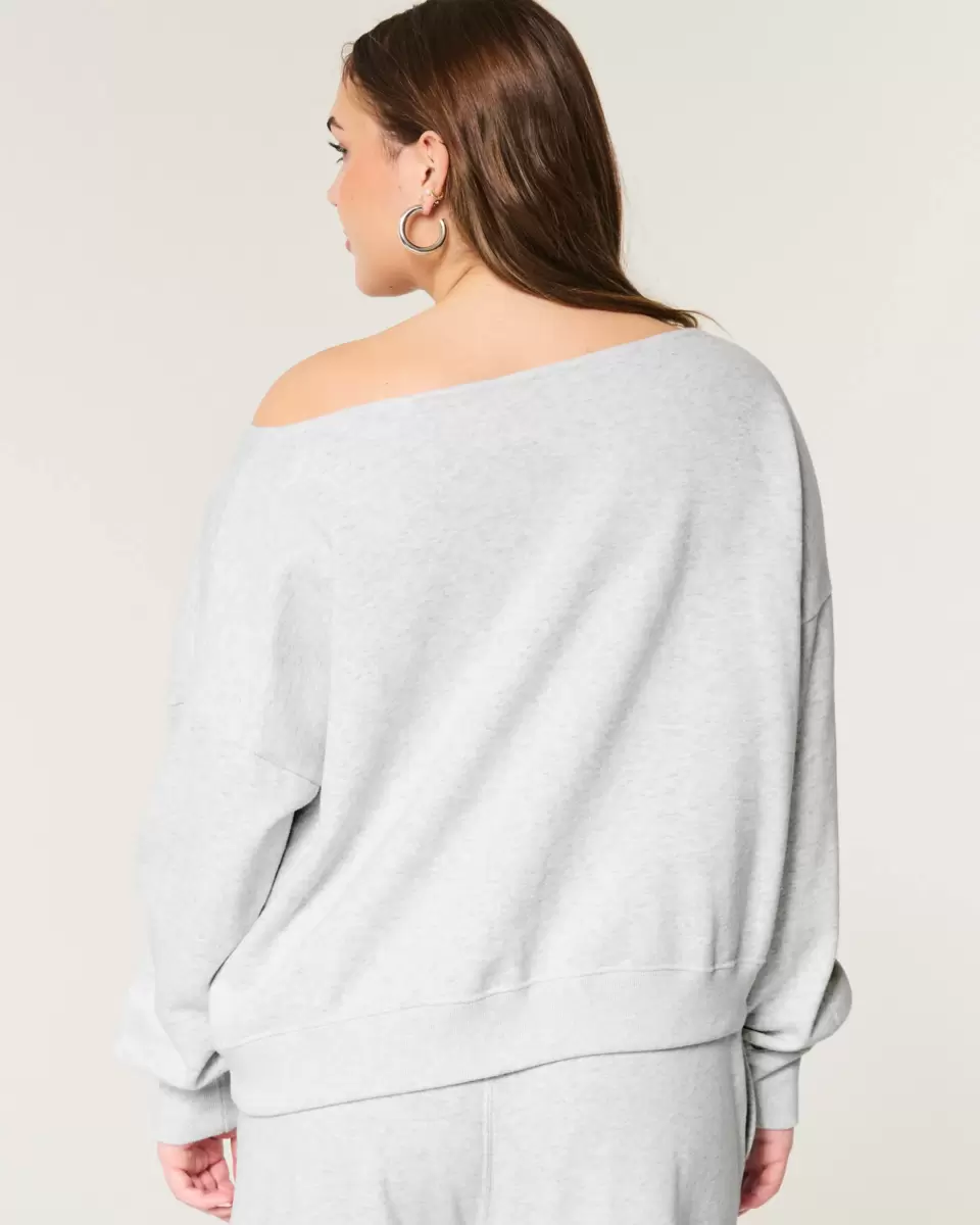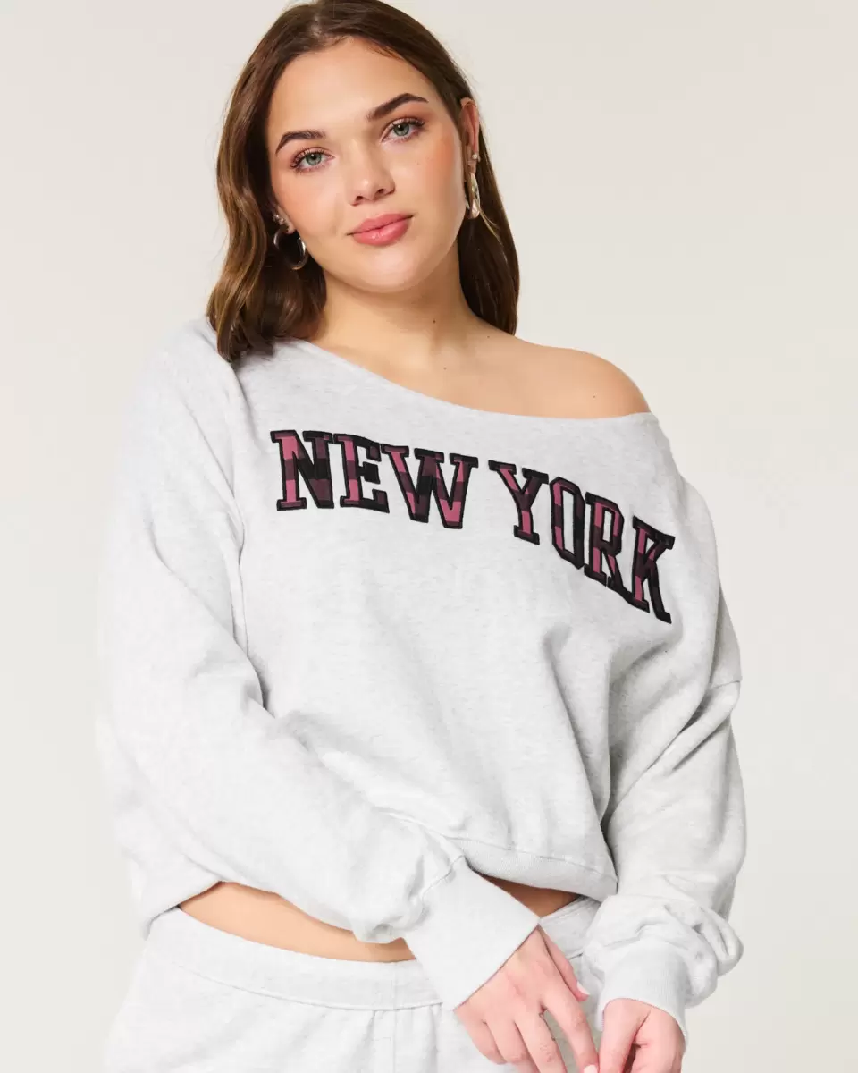 Denna mysiga och supermjuka fleecetröja har New York grafisk applikation och en off-the-shoulder-ringning. Långa ärmar, mini siluett. Importerad.