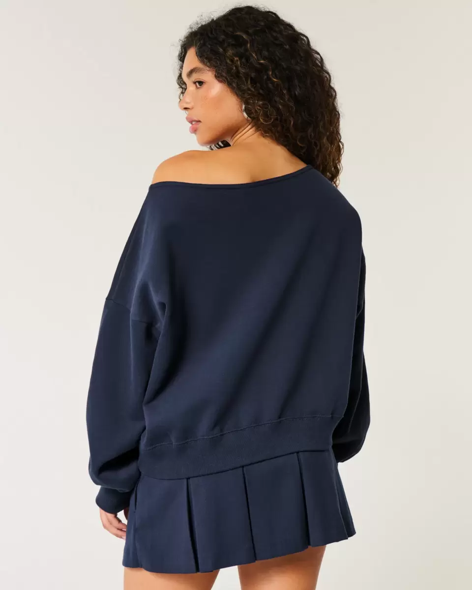 Denna mysiga och supermjuka fleecetröja har Paris grafiska applikationer och en axelringning. Långa ärmar, mini siluett. Importerad.