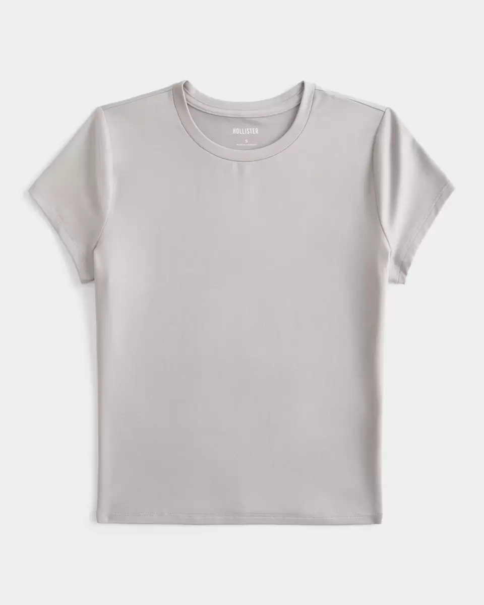 Denna söta och bekväma baby-t-shirt är gjord av mjukt stretchtyg med en sömlös look och känsla. Longline siluett, rund halsringning, korta ärmar.
