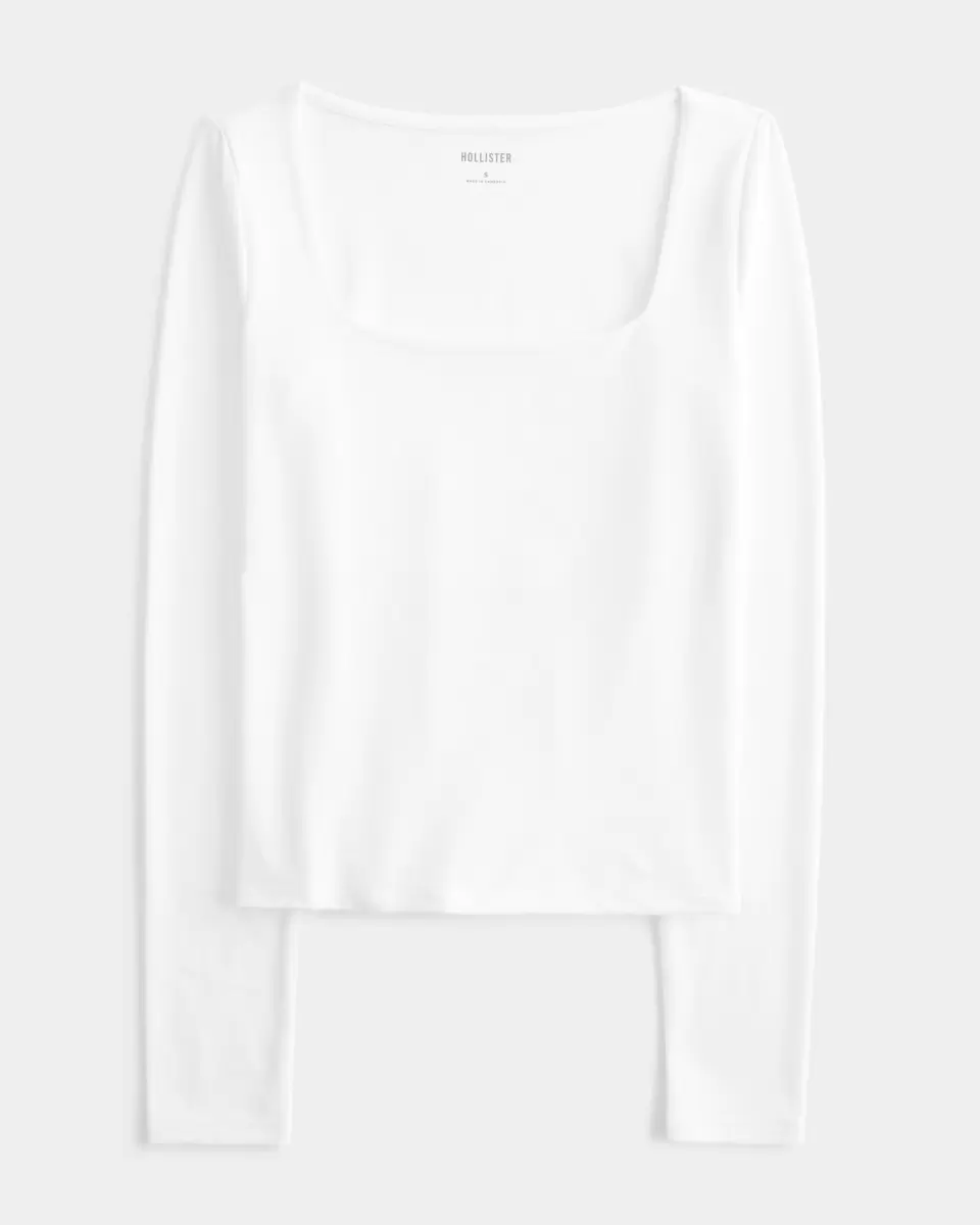 En mysig långärmad topp i mjukt stretchtyg med en sömlös look och känsla. Fyrkantig halsringning, långa ärmar. Slim Fit.