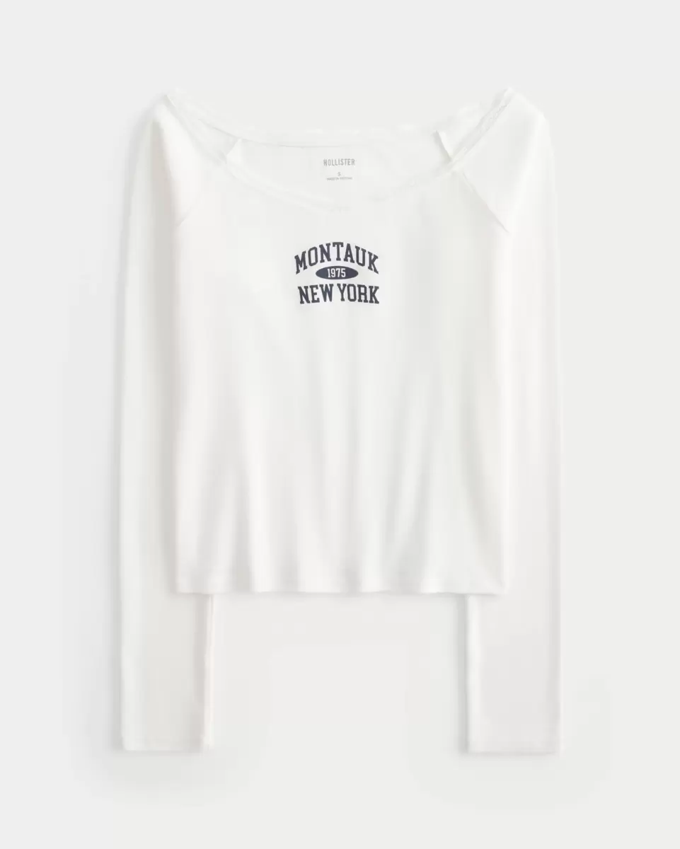 En supermjuk t-shirt i 100 % bomull med en off-the-shoulder-ringning med vackra spetskanter och ett Montauk New York-tryck. Långa ärmar. Slim Fit. Importerad.