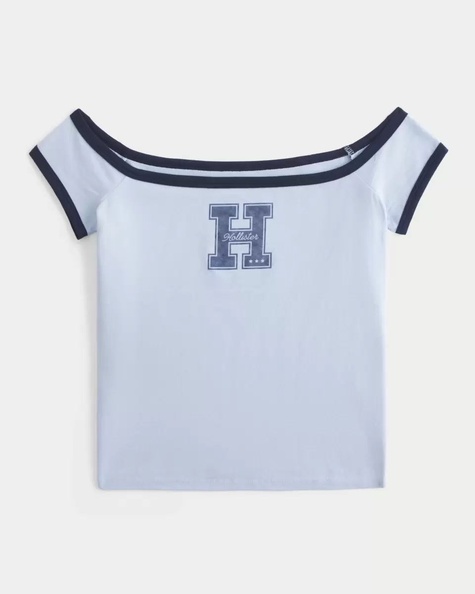 Supermjuk och söt, den här tröjan har en tryckt logotyp. Off-shoulder halsringning, korta ärmar. Slim Fit. Importerad.
