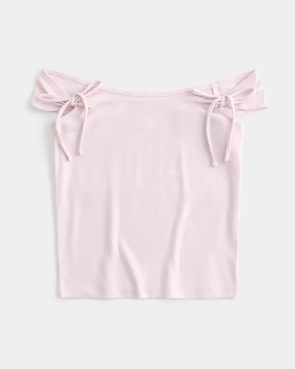 En supermjuk och söt topp med en off-the-shoulder-ringning och knytdetaljer. Slim Fit. Importerad.