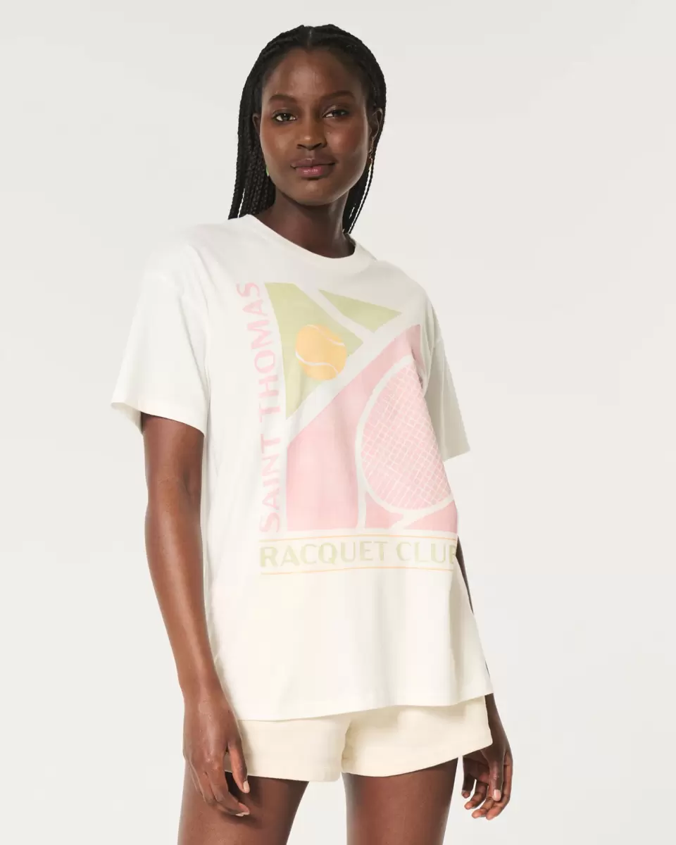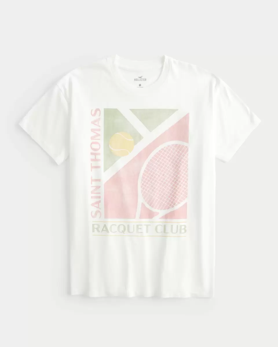 Denna supermjuka t-shirt i 100 % bomull har Saint Thomas Racquet Club-grafik, en rund halsringning och korta ärmar. Överdimensionerad passform. Importerad.