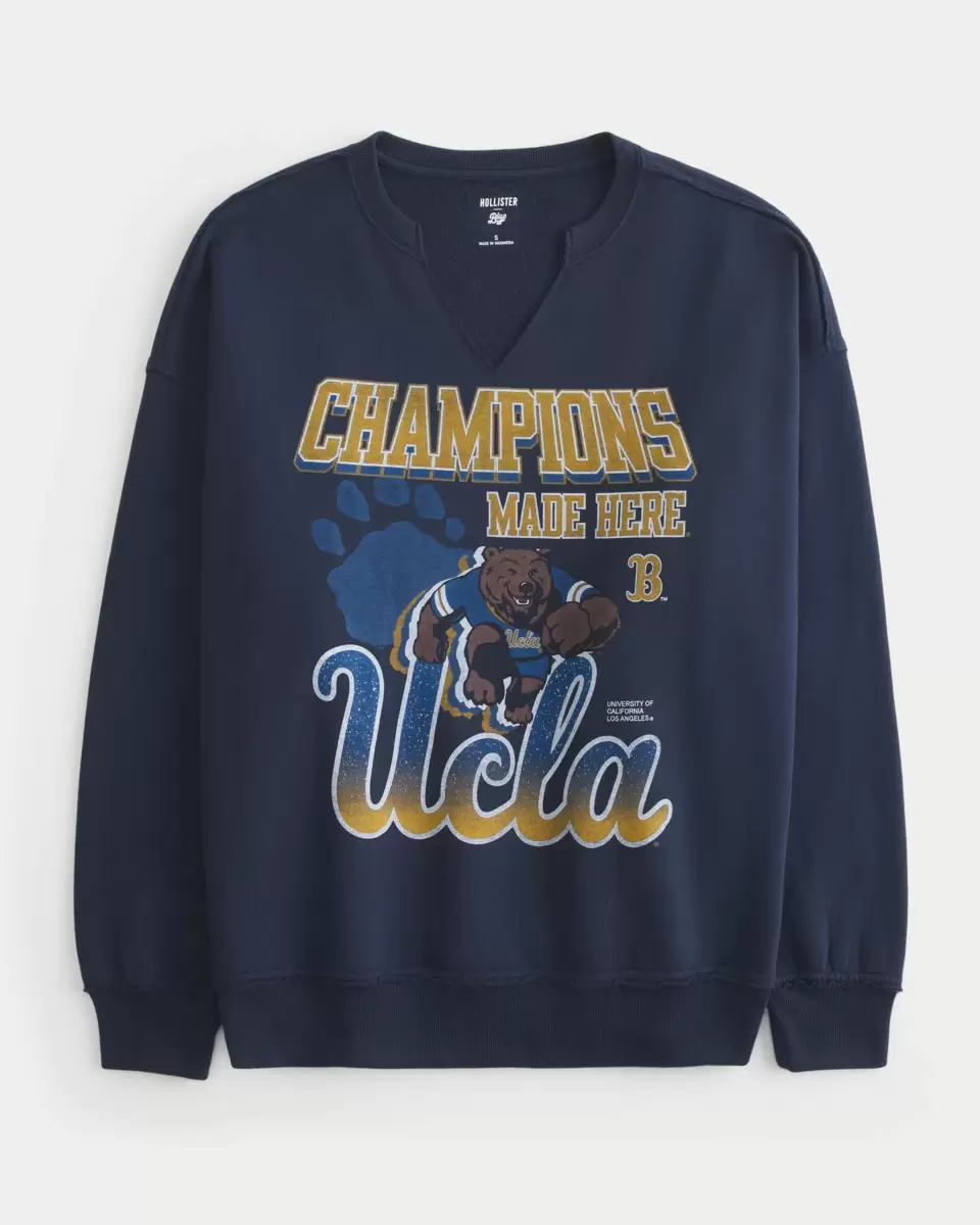 Denna supermjuka fleecetröja har officiell licensierad UCLA-grafik och en urringning. Långa ärmar. Överdimensionerad passform. Importerad.