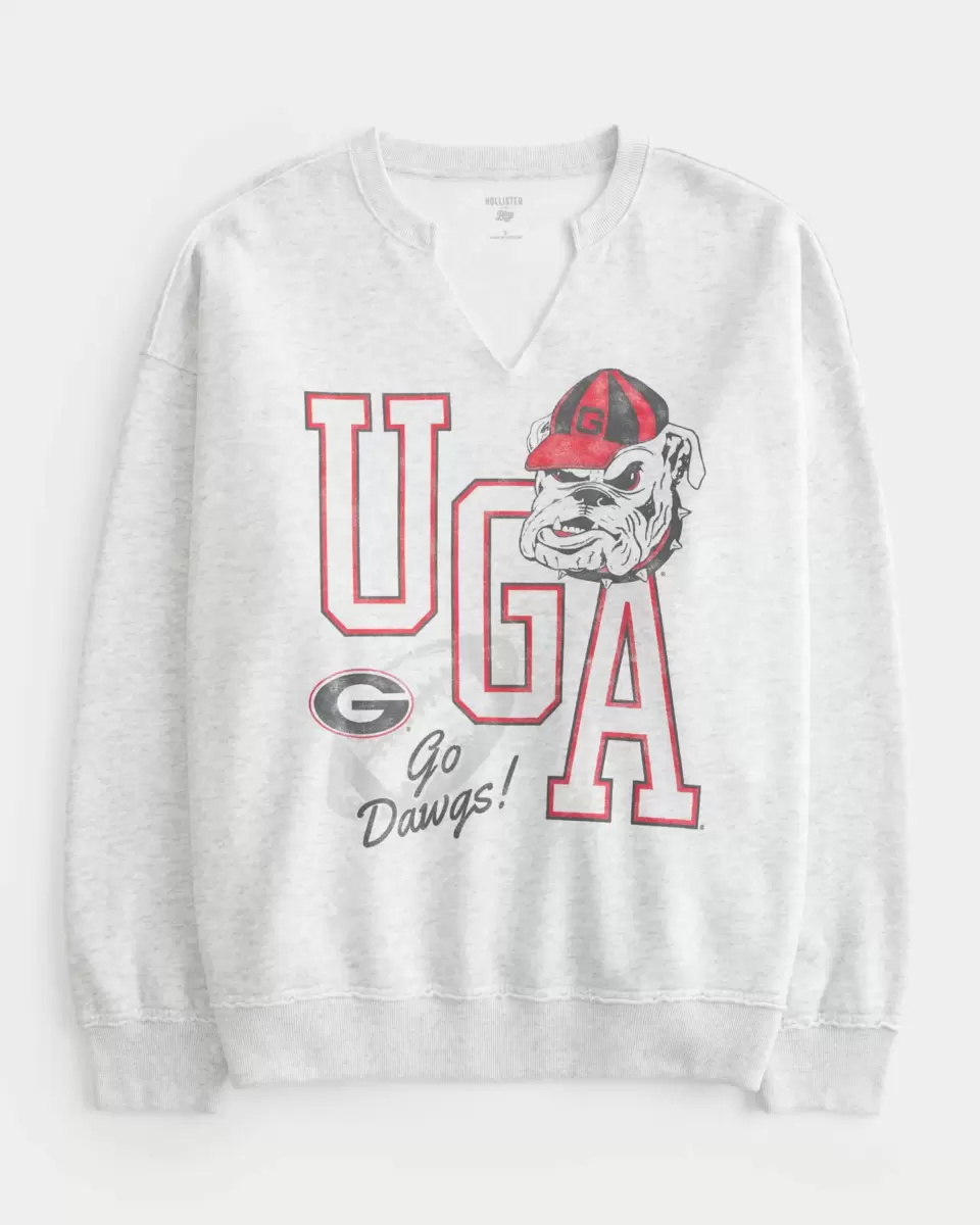 En supermjuk fleecetröja med officiellt licensierad University of Georgia UGA Dawgs-grafik, en urringning och långa ärmar. Överdimensionerad passform. Importerad.