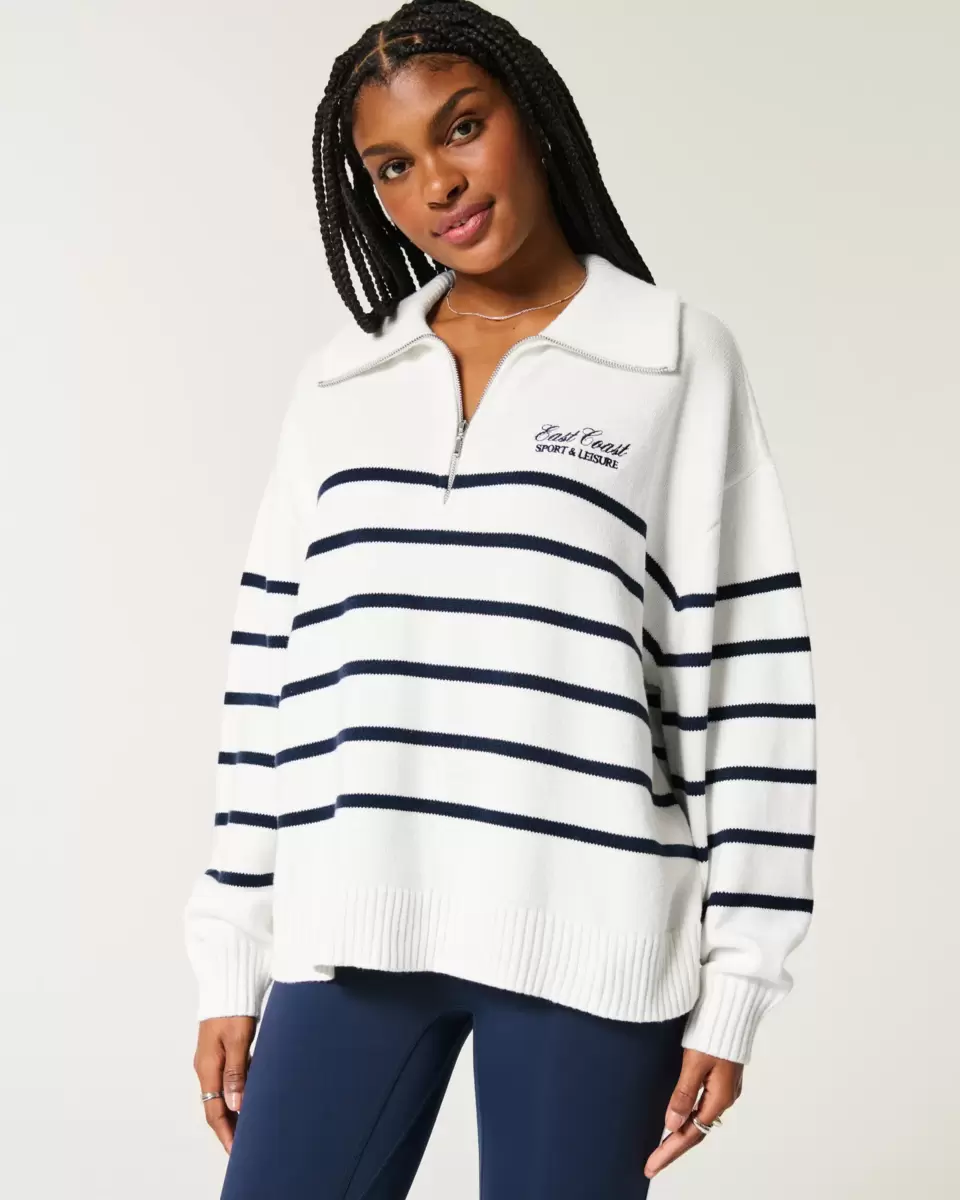 En mysig och supermjuk tröja med vikkrage och halvdragkedja. Ribbade kanter, långa ärmar, broderade East Coast Sport & Fritidsgrafiskt broderi på vänster bröst. Oversized Fit.