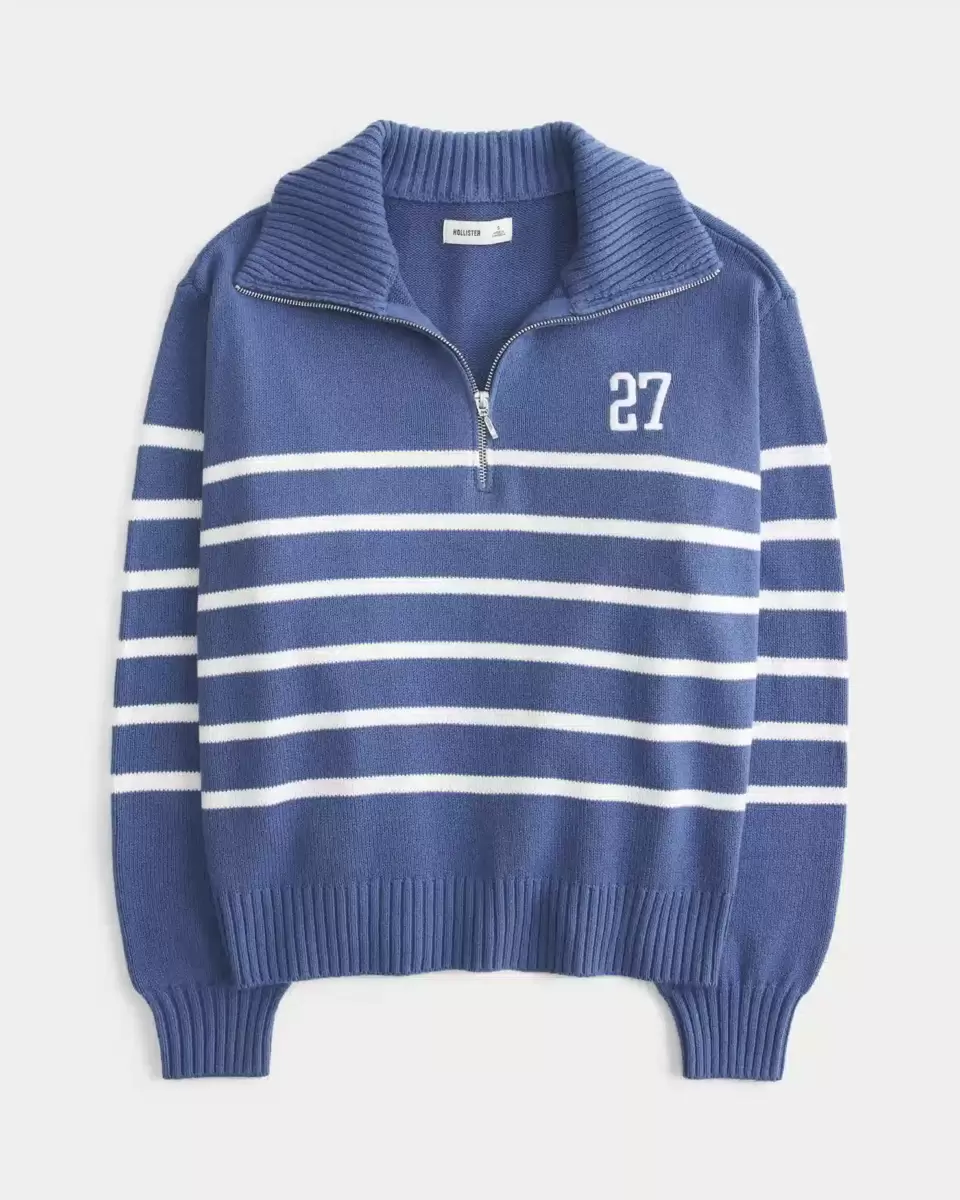 En mysig och supermjuk tröja med vikkrage och halvdragkedja. Broderad grafik med 27 siffror på vänster bröst, långa ärmar, ribbad kant. Överdimensionerad passform. Importerad.