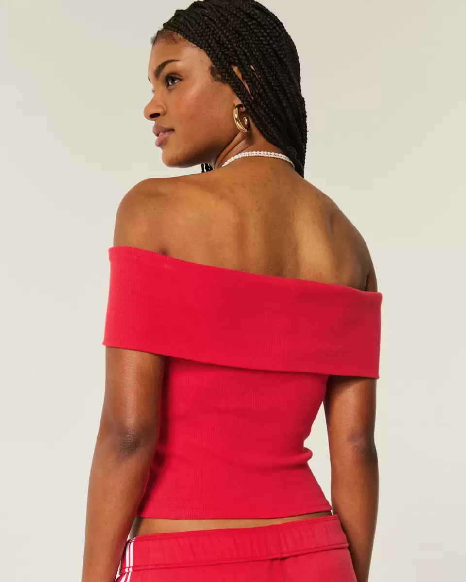 Bekväm och supermjuk, den här ribbade toppen har en vikbar halsringning utanför axeln. Slim Fit. Importerad.