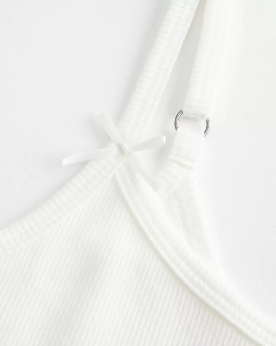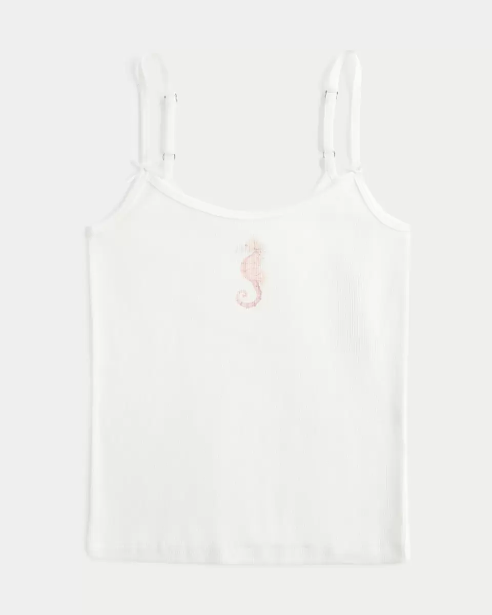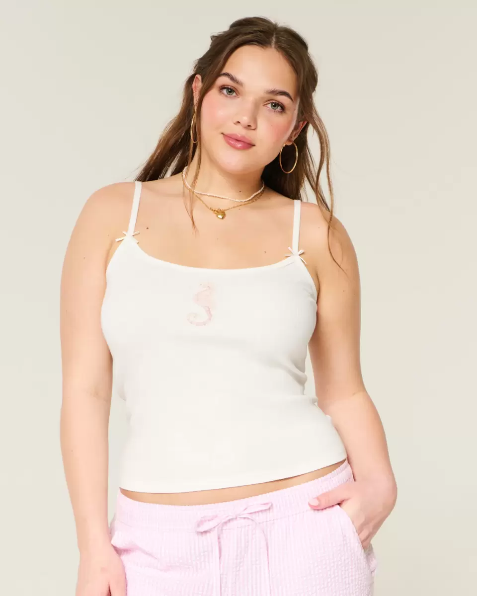 Denna söta cami är gjord av mjukt ribbad tyg och har ett sjöhästtryck. Justerbara remmar med snygga rosettdetaljer. Slim Fit. Importerad.