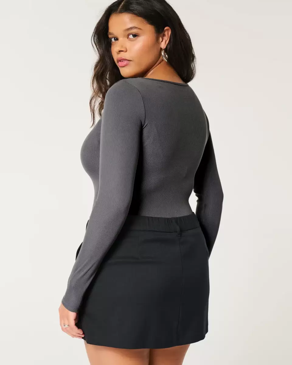 Ultrabekväm och supermjuk, den här bodyn är gjord av mysigt ribbad tyg med en sömlös look och känsla. Fyrkantig halsringning, långa ärmar, knäppning nedtill. Importerad.