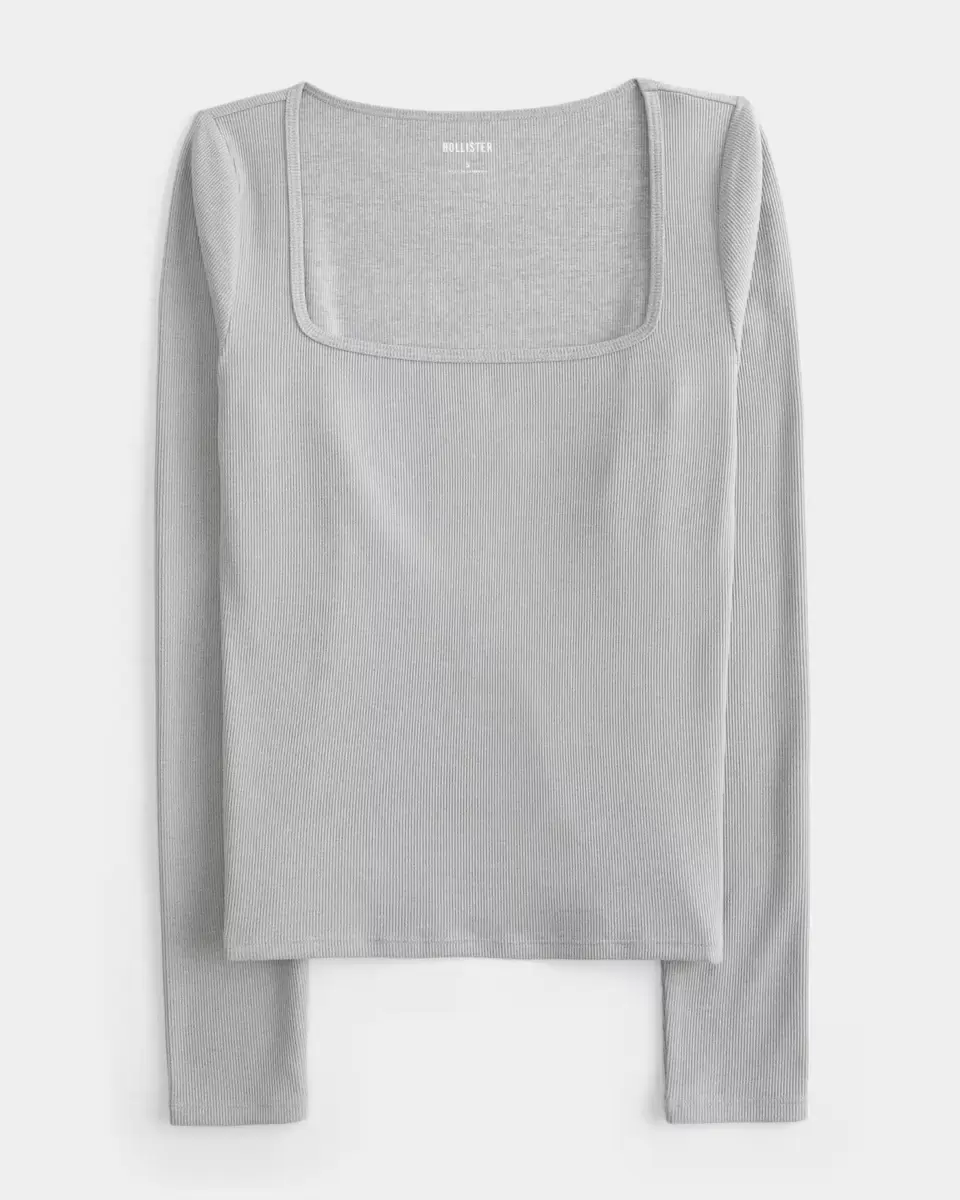 Denna söta och mysiga topp är gjord av supermjukt ribbad tyg med en sömlös look och känsla. Fyrkantig halsringning, långa ärmar. Slim Fit. Importerad.