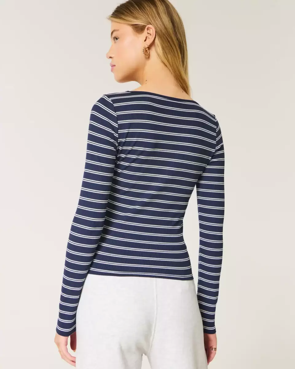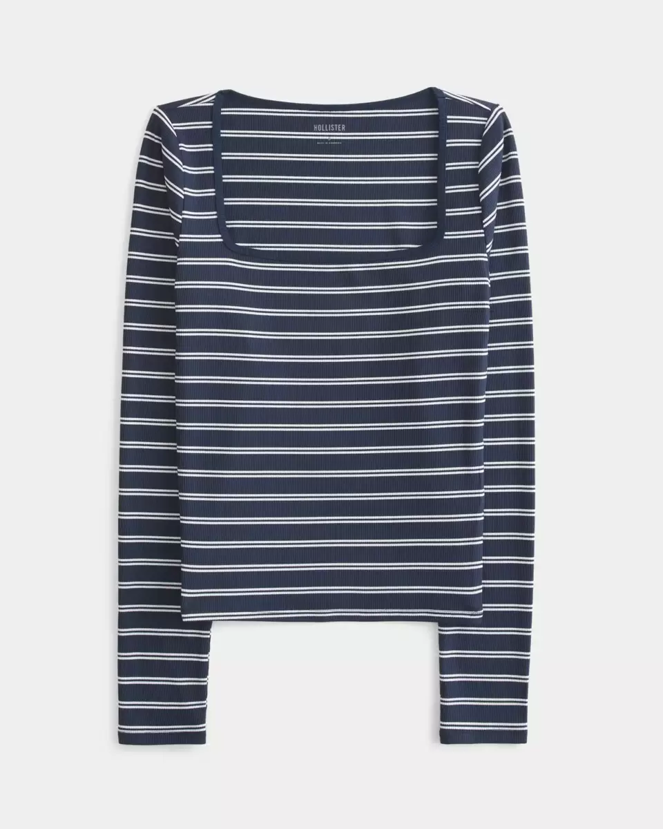 En ultramjuk och mysig långärmad topp i ribbad tyg med en sömlös look och känsla. Fyrkantig halsringning, långa ärmar. Slim Fit. Importerad.