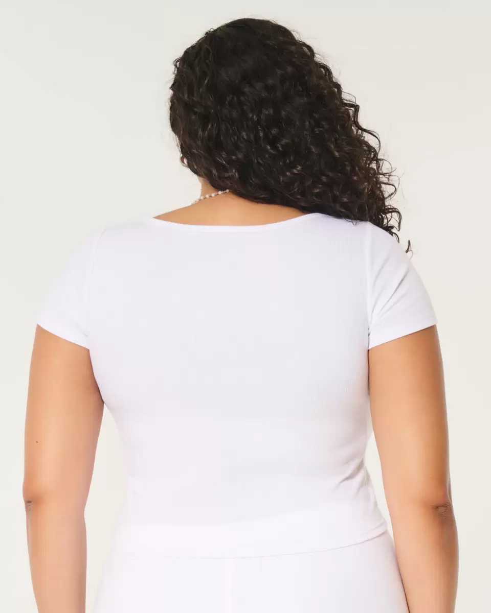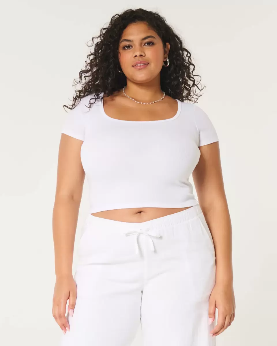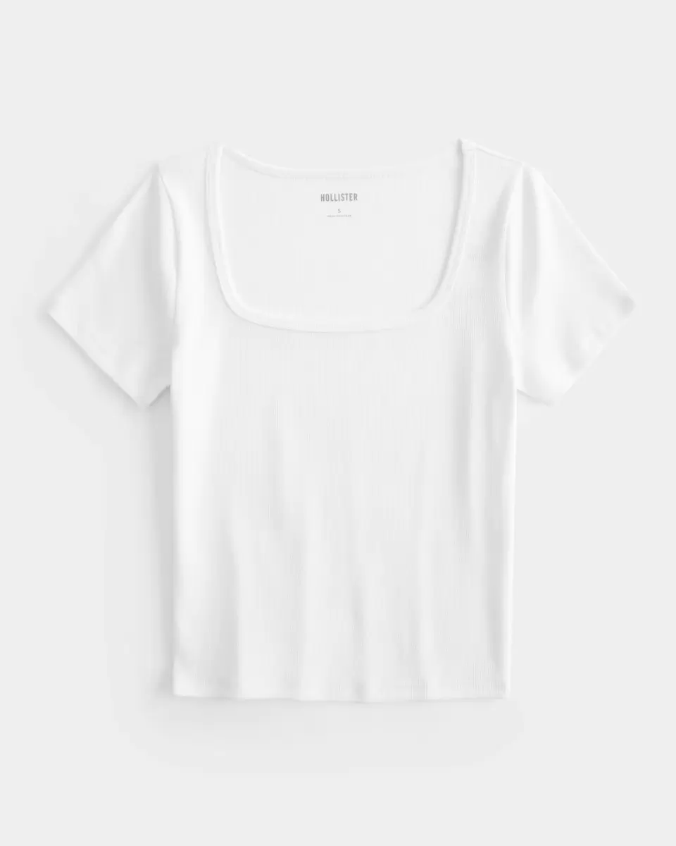 En mysig och supermjuk kortärmad babytröja i ribbad tyg. Fyrkantig halsringning, korta ärmar. Slim Fit.