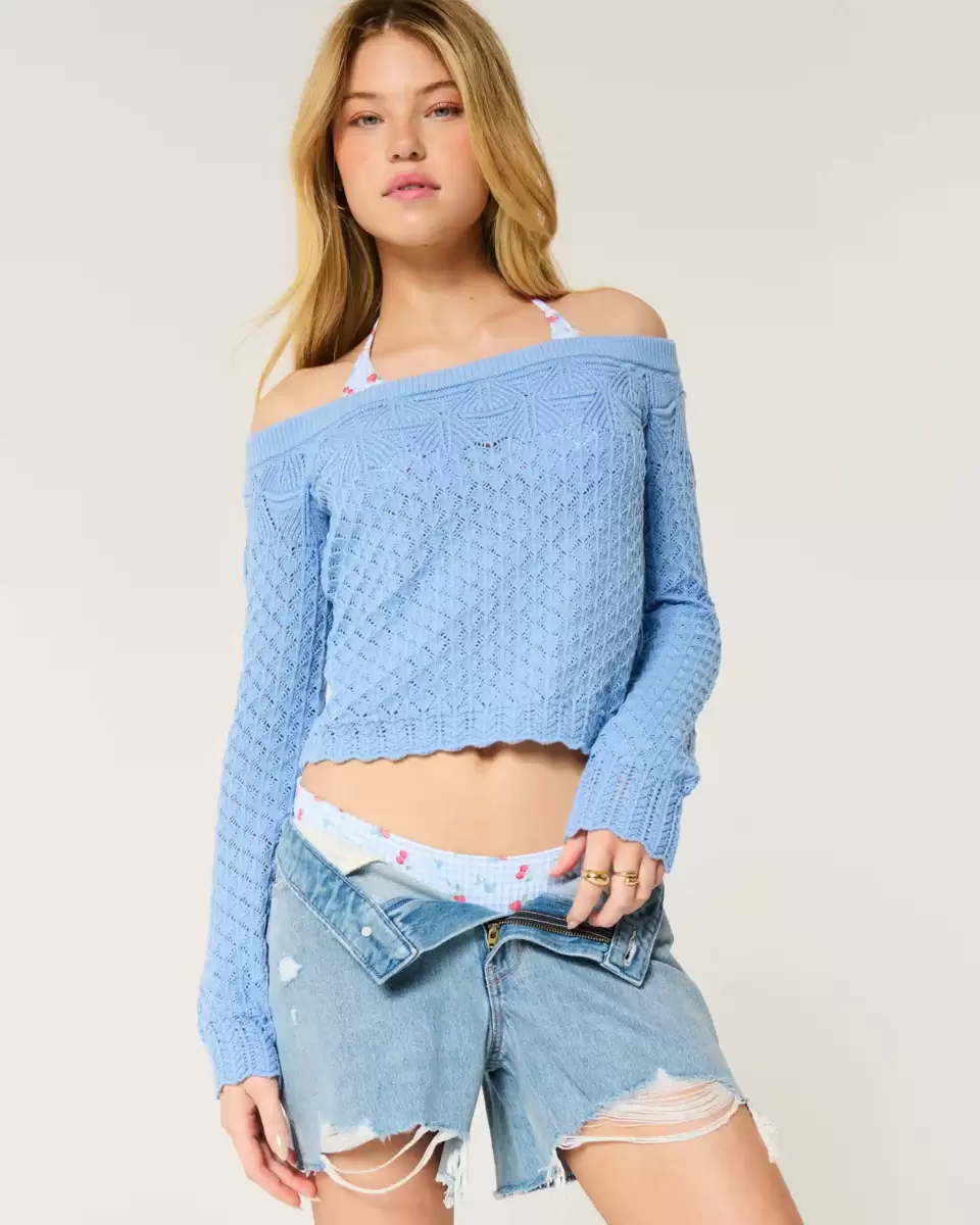 Denna supermjuka tröjan är gjord av mysigt virkat tyg med sömnad struktur och har en axelringning som inte är ansluten. Ribbstickad halsringning, långa ärmar. Slim Fit. Importerad.