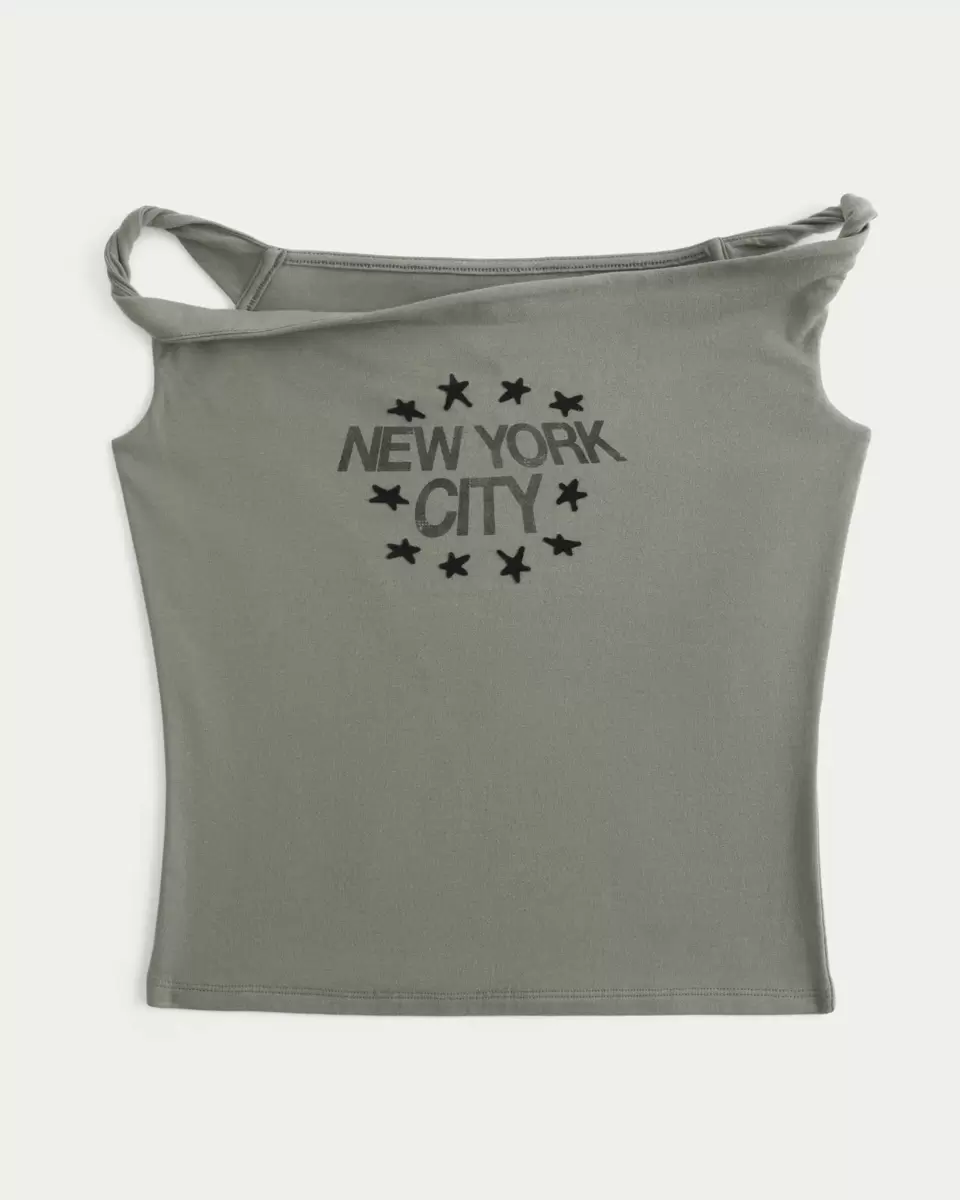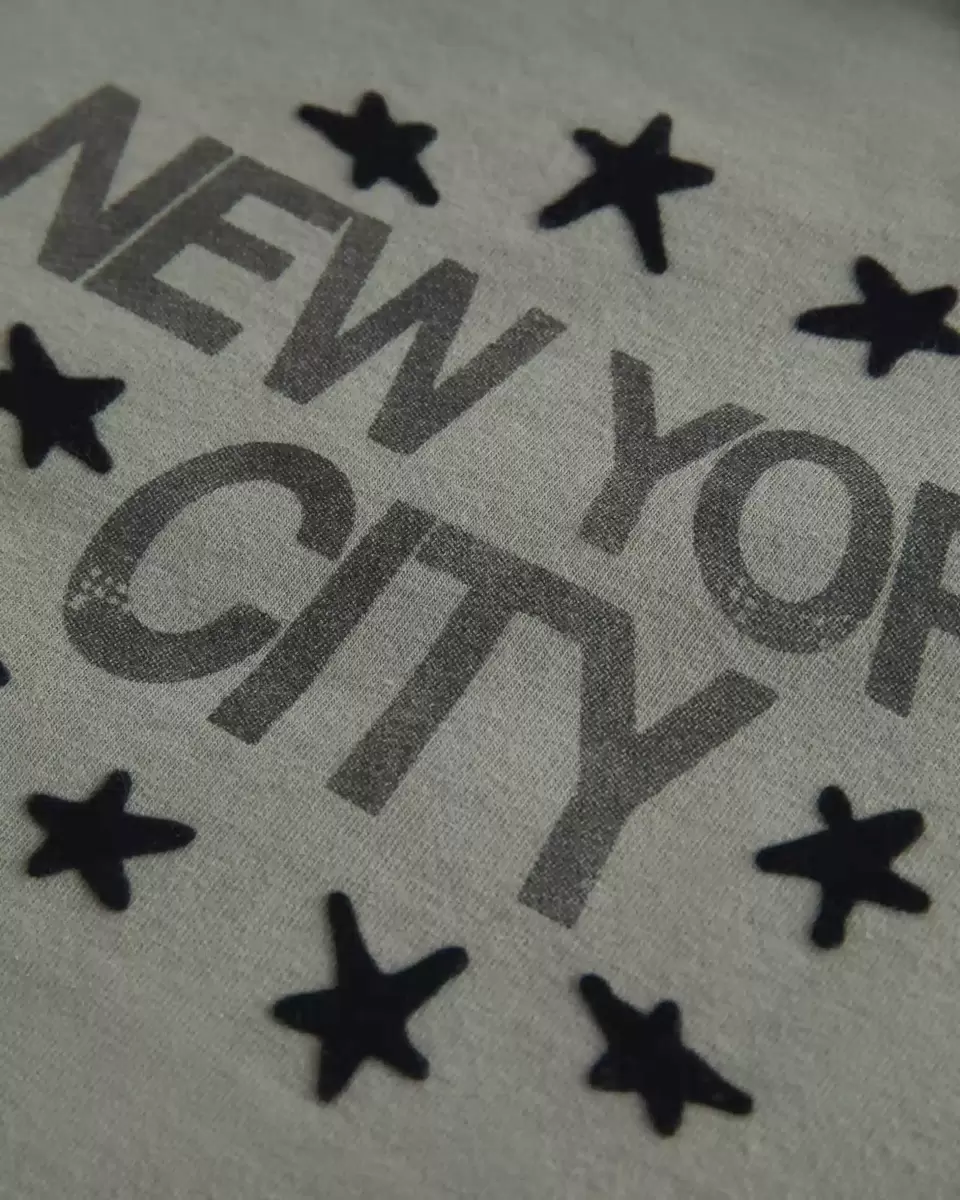 Supermjuk och bekväm, den här trendiga dropptröjan har en vintageinspirerad New York City-grafik och vriden off-the-shoulder-ringning. Slim Fit. Importerad.