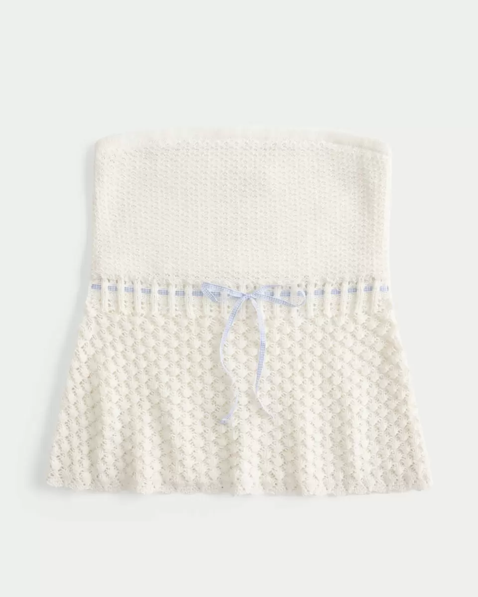 Mysig och supermjuk, denna tubtopp har virkade mönster och en knytdetalj genom midjan. Axelbandslös. Importerad.
