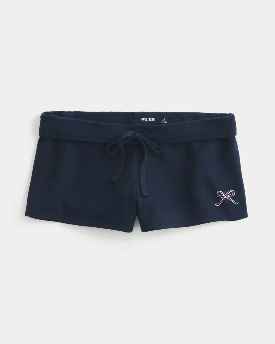 Söta och supermjuka minishorts i fleece med en söt rosett i strass. Mjuk midja med dragsko i midjan som går att vika över till låg. Importerad.
